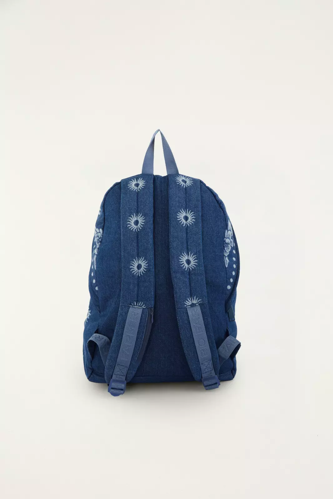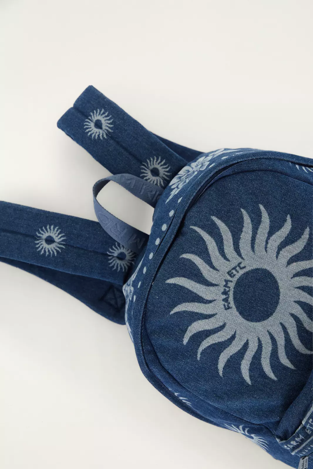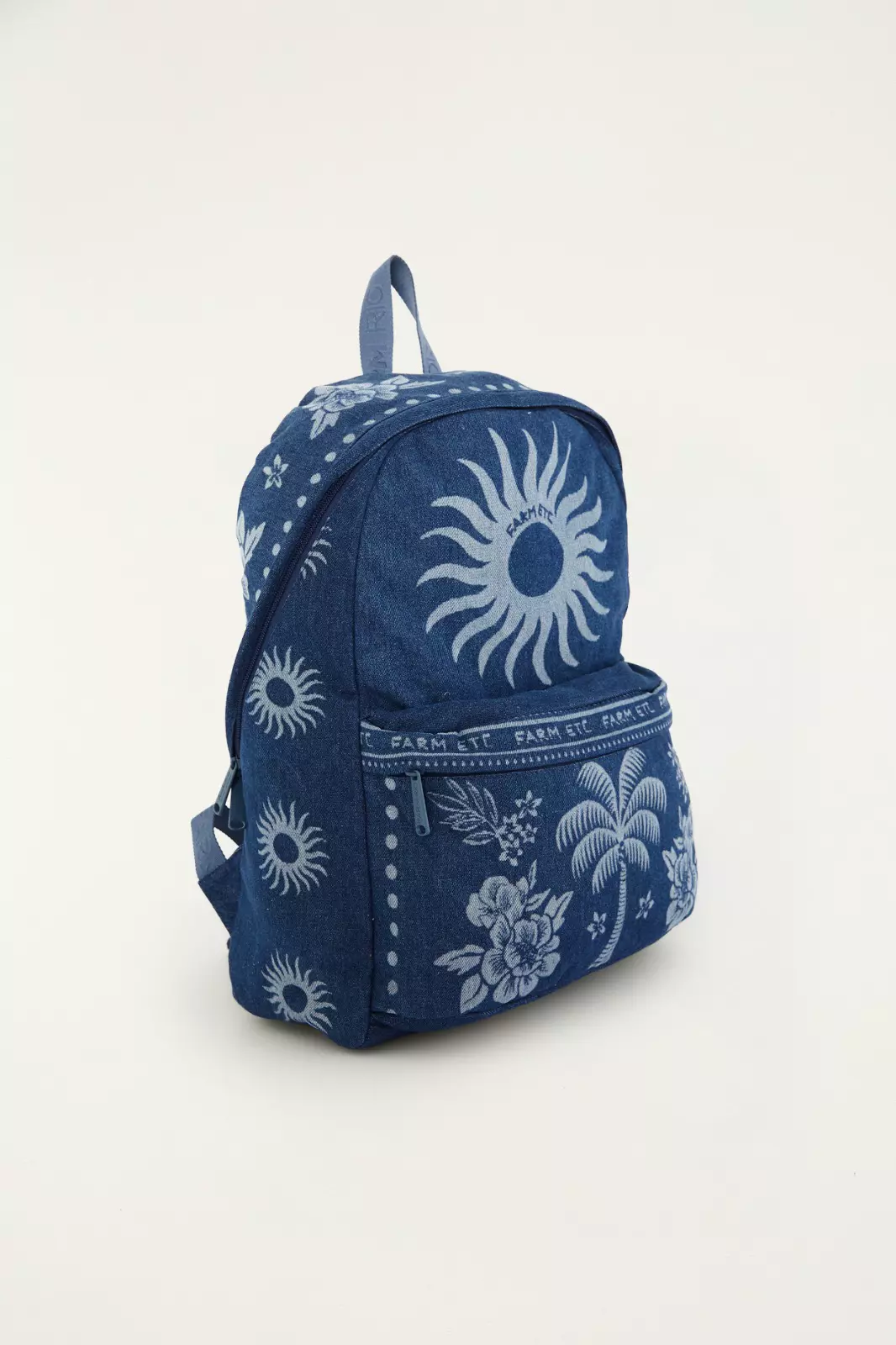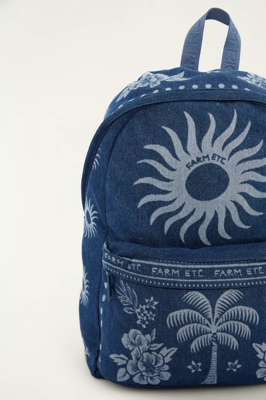 É a união perfeita entre a funcionalidade do dia a dia e o DNA solar da Farm. Em uma lavagem jeans profunda, ela traz o contraste impecável das estampas em tom off-white, criando um visual boho-chic que é tendência absoluta para a temporada.