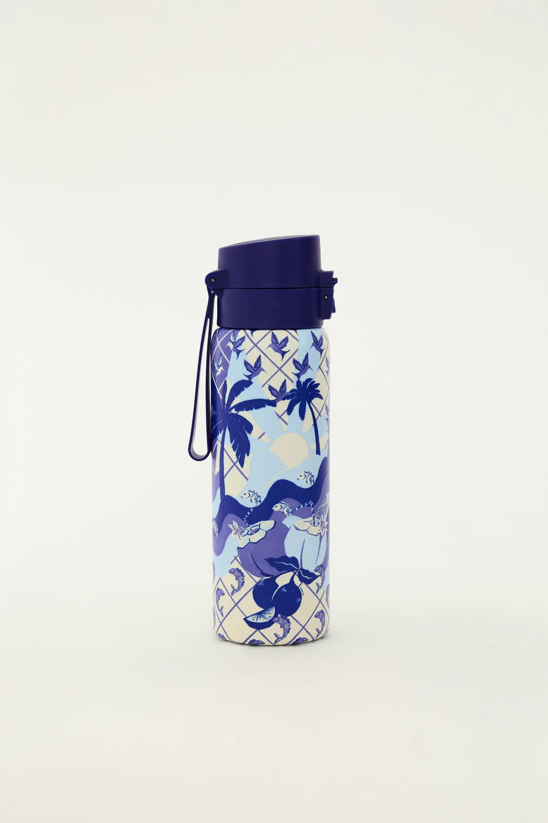 Com estampa artística em tons de azul inspirada em paisagens tropicais, ela deixa a hidratação muito mais estilosa — ideal para trabalho, academia, viagens, passeios e rotina.