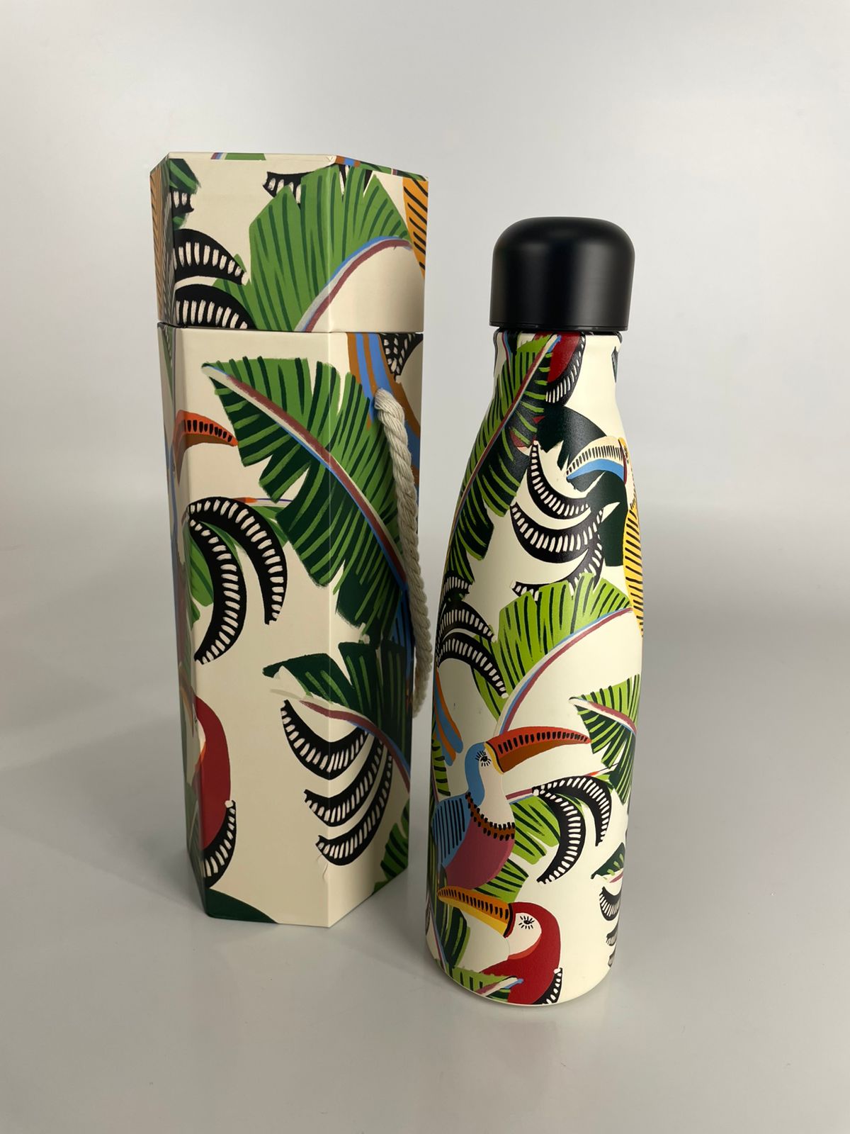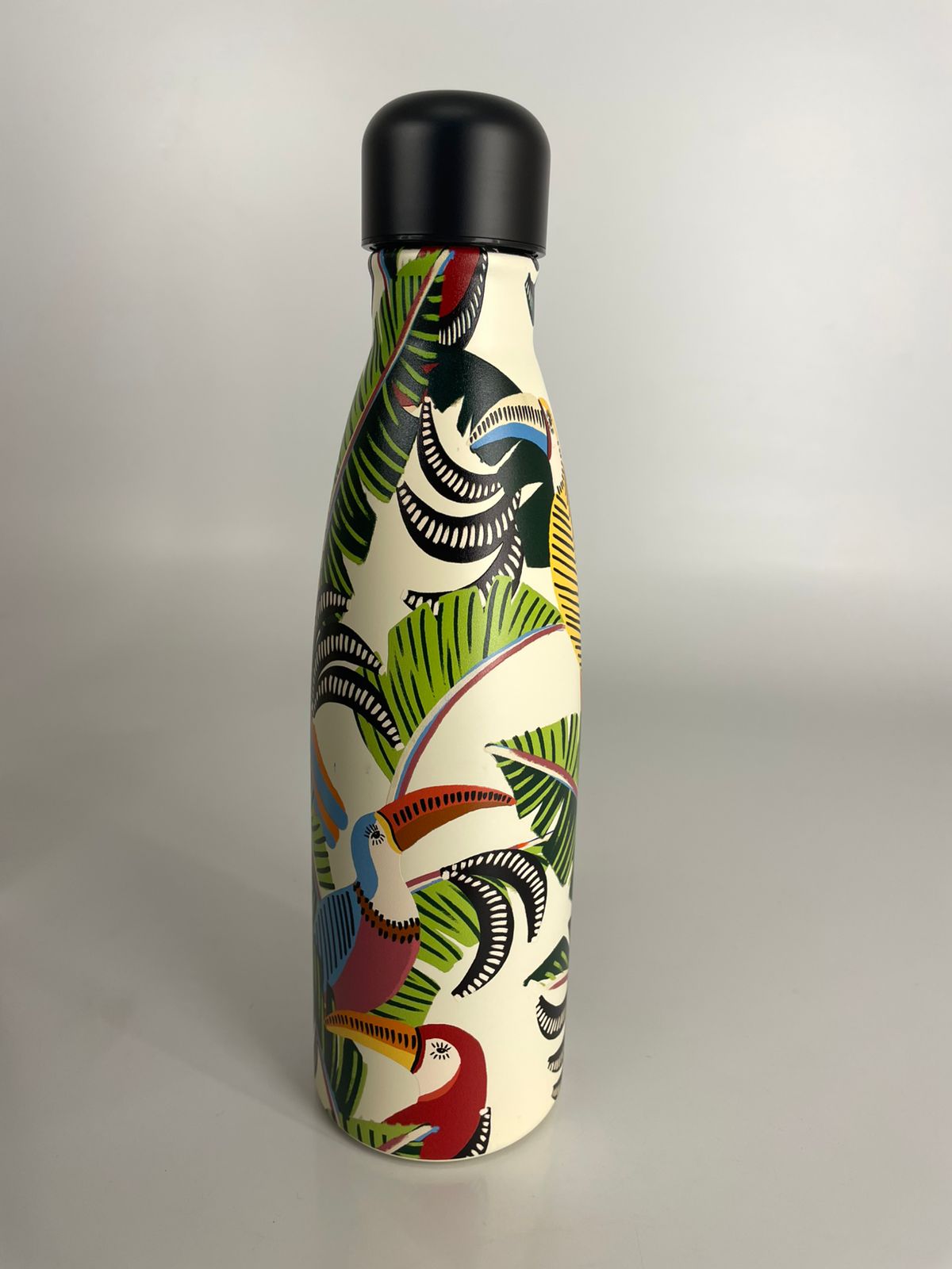 Um item que transborda a tropicalidade brasileira em cada detalhe. Com uma estampa vibrante que traz tucanos e bananas em um fundo off-white, ela é a tradução perfeita da energia solar da Farm. No formato clássico “bowl” e com capacidade de 500ml, ela une o design icônico da marca com a praticidade necessária para te acompanhar do trabalho ao lazer, mantendo o estilo sempre em alta.