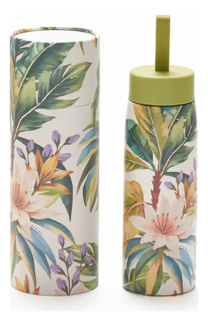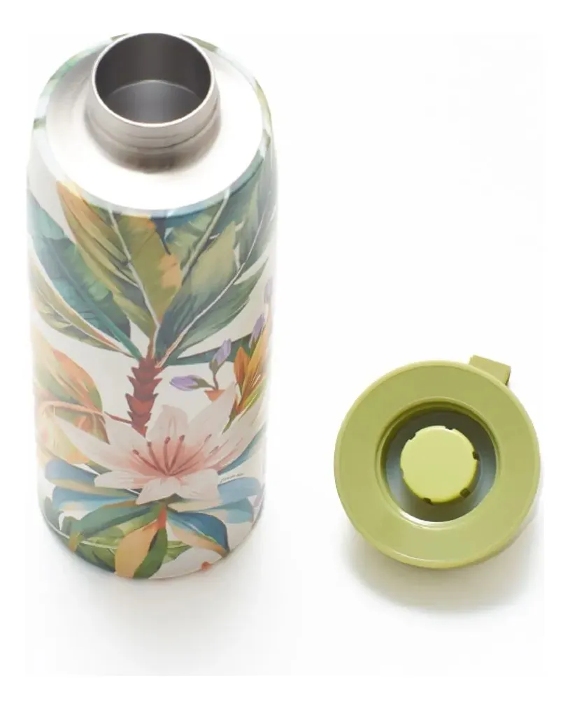 Benefícios: Durabilidade – Fabricada em aço inoxidável, é resistente a impactos e à corrosão, garantindo maior durabilidade. Isolamento térmico – Mantém a temperatura das bebidas por mais tempo, ideal para líquidos quentes e frios. Sustentabilidade: Uma alternativa ecologicamente correta às garrafas plásticas descartáveis, contribuindo para a redução do lixo plástico. Estilo: A estampa tropical exclusiva traz um toque de personalidade e moda à sua rotina diária.