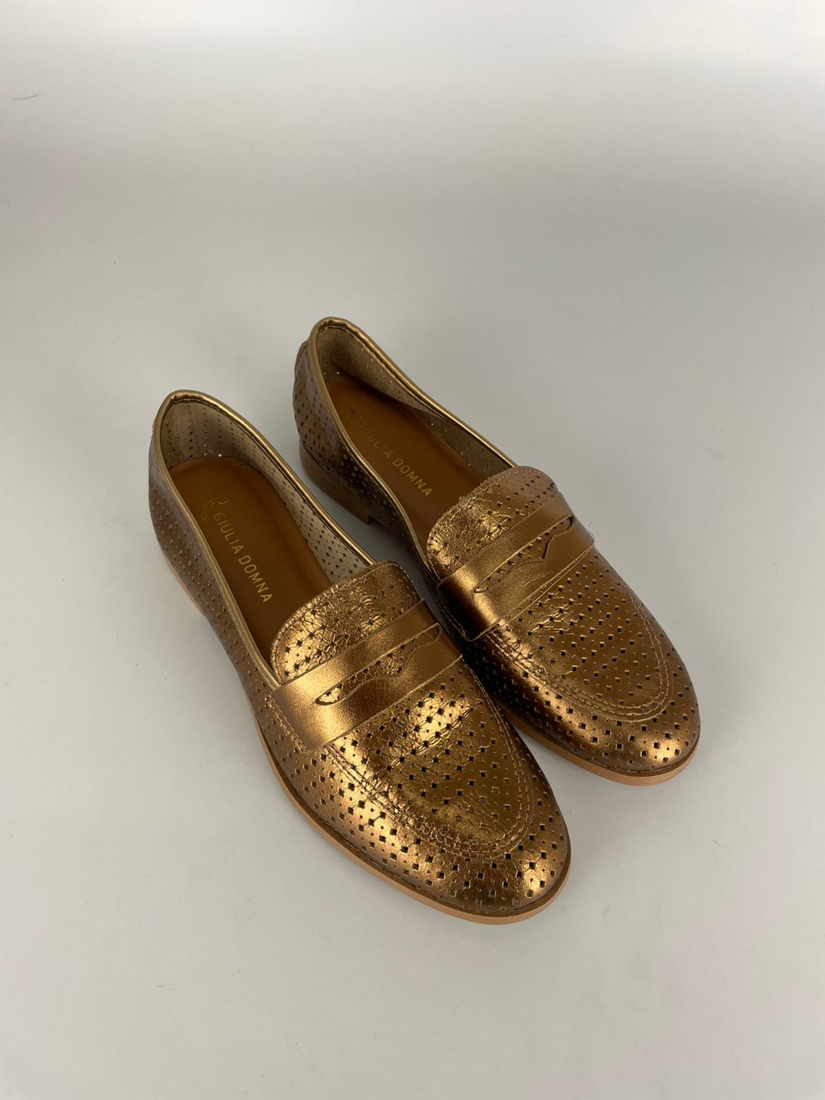 Início / Loafer e Mocassim / mocassim / Giuliadomna Mocassim Metalizado Couro Bronze Giuliadomna Mocassim Metalizado Couro BronzeR$239,90 Guia de Tamanhos BRComprimento (cm)33223422,73523,136243724,73825,339264026,7 Tamanho: Nenhuma seleção Escolha uma opção343537Limpar Giuliadomna Mocassim Metalizado Couro Bronze quantidade Comprar SKU: Não aplicável Categorias: Loafer e Mocassim, mocassim Marca:Giulia Domna Calcular o Frete Não sei meu CEP Informação adicional Informação adicional Tamanho 34, 35, 37 Produtos relacionados Aquarela Loafer Vazado Off White R$229,90 343536373839Comprar Aquarela Loafer Vazado Bico Redondo Azul R$279,90 343536373839Comprar Aquarela Loafer Camurça Havana R$229,90 343536373839Comprar Aquarela Loafer Metalizado R$259,90 343536373839Comprar