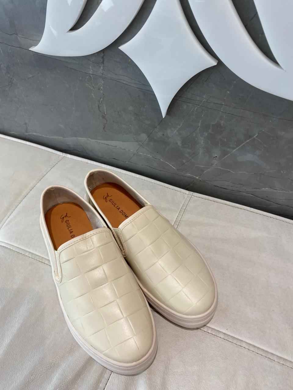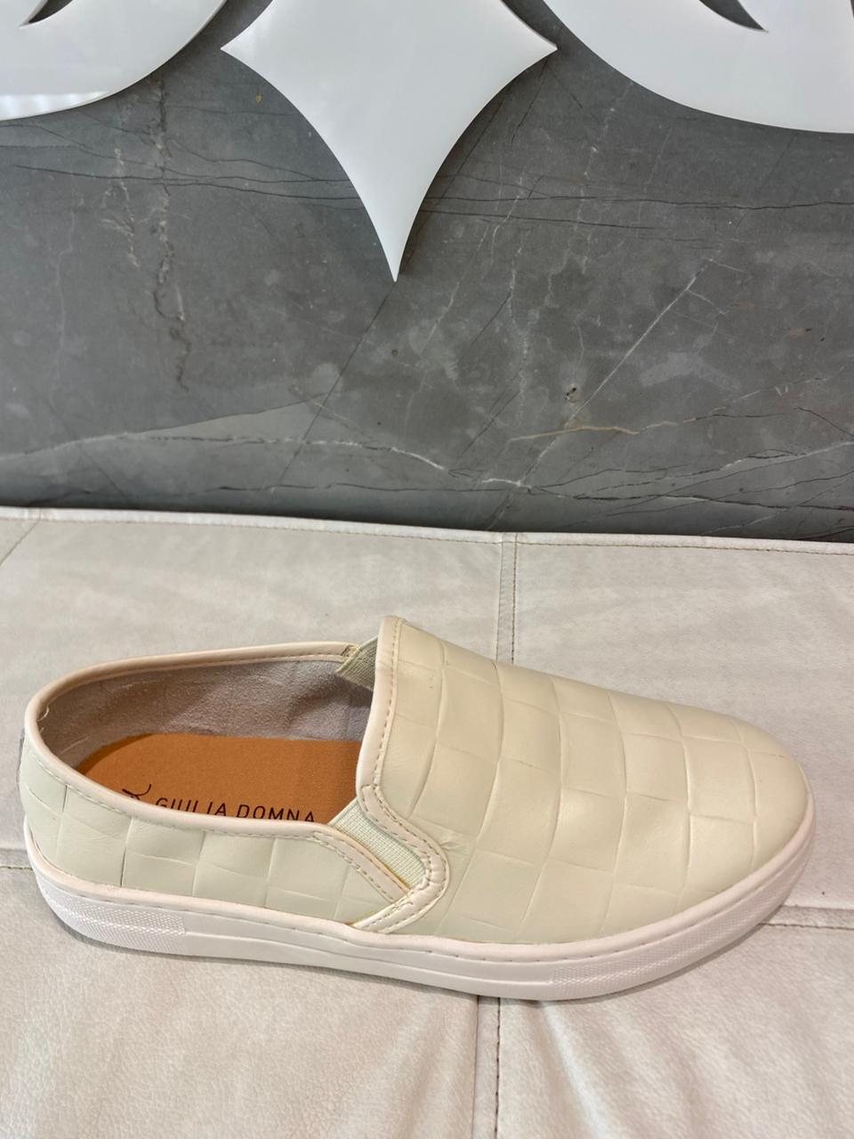 InÃcio / Tênis / Giuliadomna Tênis Couro Off White Giuliadomna Tênis Couro Off WhiteR$199,90 Tamanho: Nenhuma seleção Escolha uma opção35363839 Tamanho: Nenhuma seleção 37Escolha uma opção37Limpar Giuliadomna Tênis Couro Off White quantidade Comprar SKU: Não aplicável Categoria: Tênis Marca:Giulia Domna Calcular o Frete Não sei meu CEP Informação adicional Informação adicional Tamanho 35, 36, 38, 39 Tamanho 37 Produtos relacionados Usaflex Tênis Em Couro Ouro Light R$429,90 343536373839Comprar Usaflex Tênis Cadarço Elástico R$449,90 3435363738Comprar Usaflex Tenis Elastico Branco R$469,90 343536373839Comprar Marina Mello Tênis Daniela Ouro R$419,90 343536373839Comprar