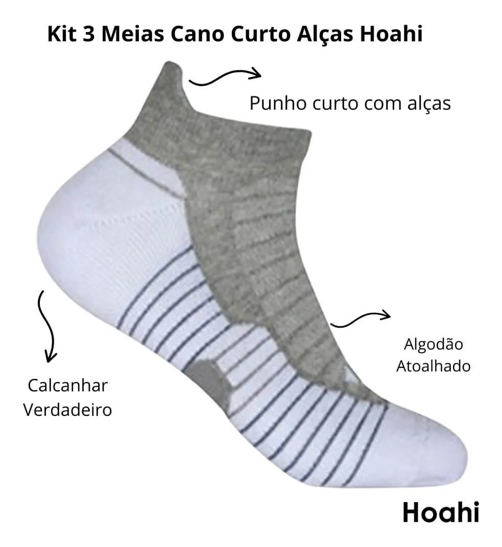O Kit com 3 Meias Cano Curto Alças Hoahi é ideal para quem busca conforto, praticidade e desempenho no dia a dia. Confeccionadas em algodão atoalhado macio, oferecem toque agradável à pele, excelente absorção de suor e maior proteção para os pés. A modelagem soquete com calcanhar verdadeiro garante ajuste perfeito e mais durabilidade, enquanto o punho curto com alça facilita o calce e torna o uso ainda mais prático. Possuem áreas de compressão que auxiliam na circulação e zonas de ventilação que mantêm os pés secos e frescos ao longo do dia. Um kit versátil e funcional, perfeito para acompanhar rotinas ativas com conforto e bem-estar.
