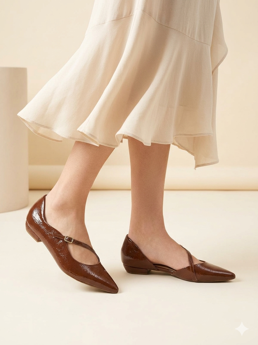 Sapatilha PointNoir Verniz Nogueira: Sofisticação Tonal e Conforto Elevado