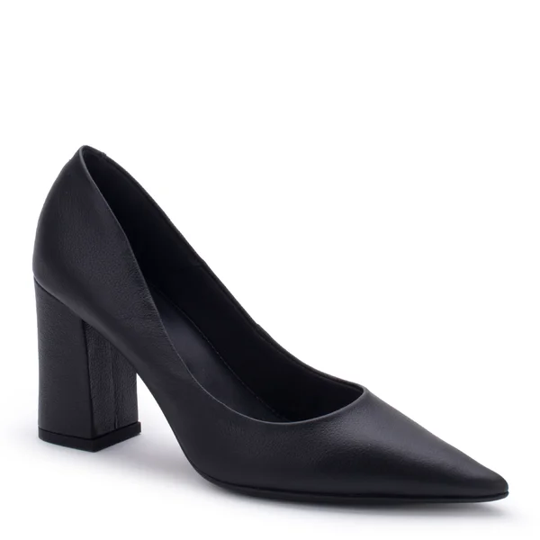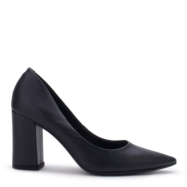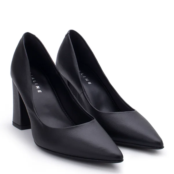 Lialine Scarpin Salto Bloco Alto Couro Preto