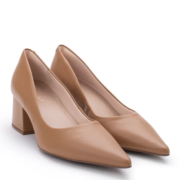 Lia Line Scarpin Salto Bloco Médio Caramelo