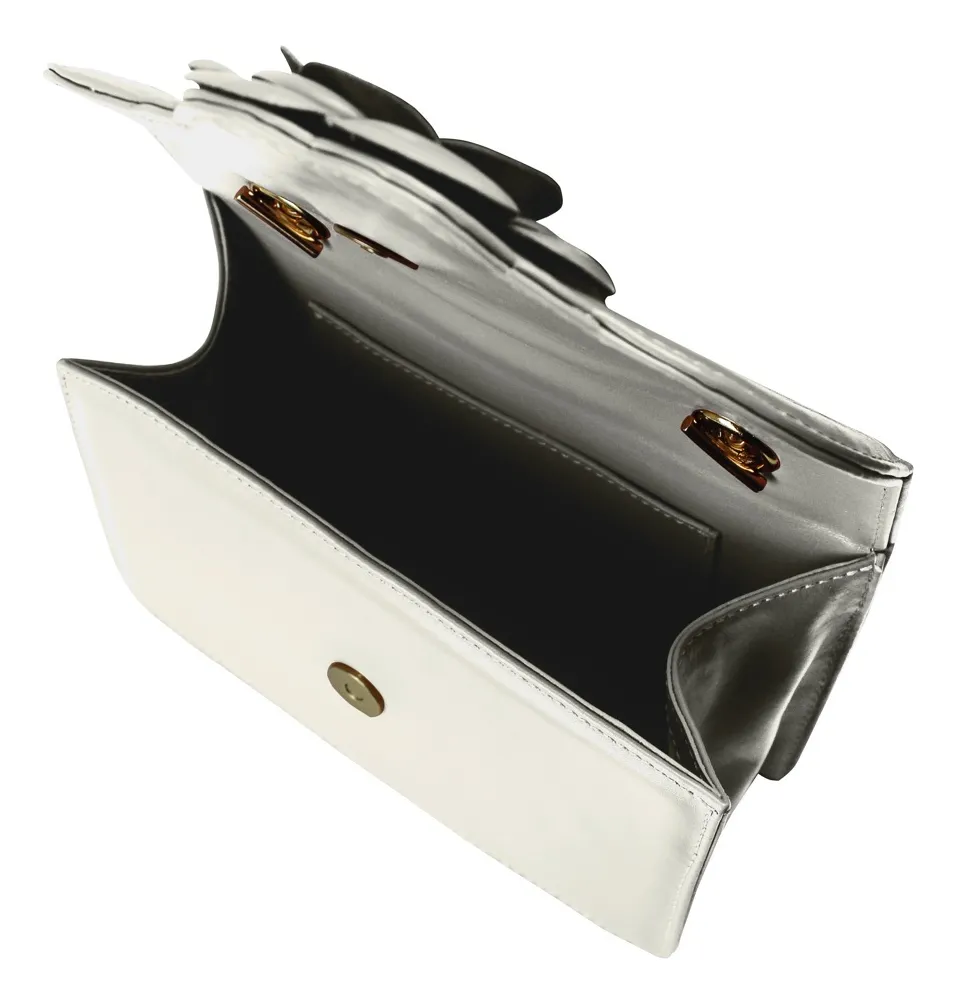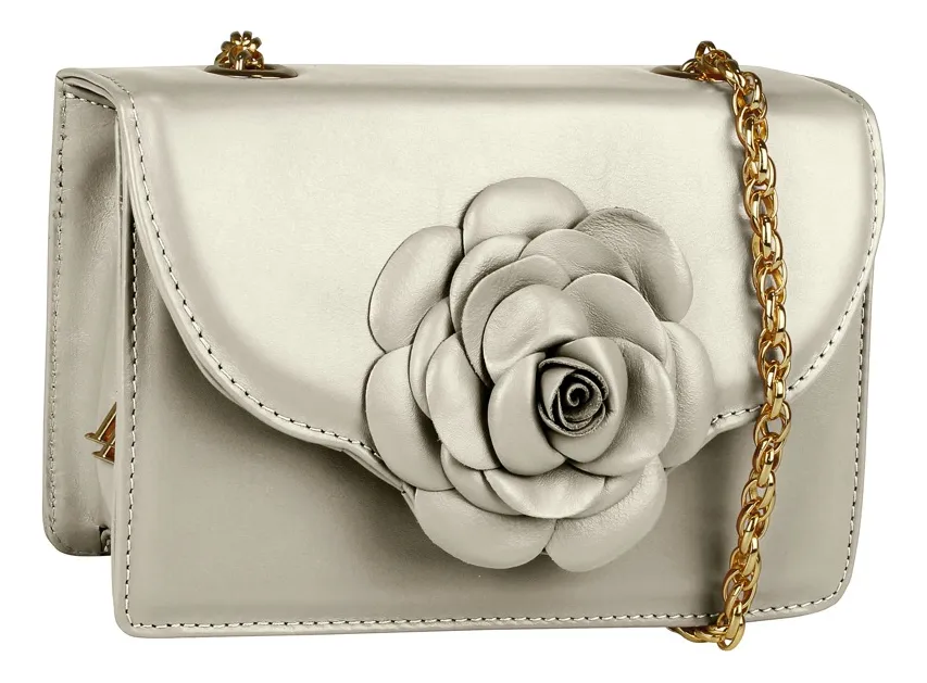 Bolsa tiracolo Linea Bella. Modelo pequeno com design sofisticado e delicado, ideal para ocasiões especiais. Possui abertura principal em tampa com botão magnético, proporcionando praticidade no uso. O interior conta com abertura ampla e porta-cartão interno, garantindo organização. O destaque fica por conta do aplique artesanal em flor, confeccionado em couro, que traz charme e exclusividade ao design. A alça em corrente com ferragens em tom ouro complementa a proposta elegante. Acabamento com bordas pintadas à mão. Produzida no Brasil.