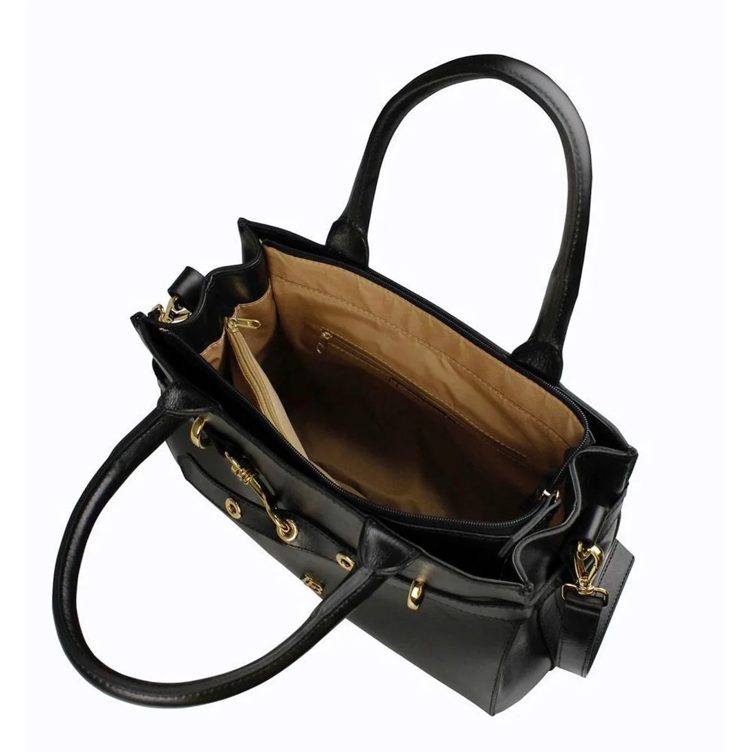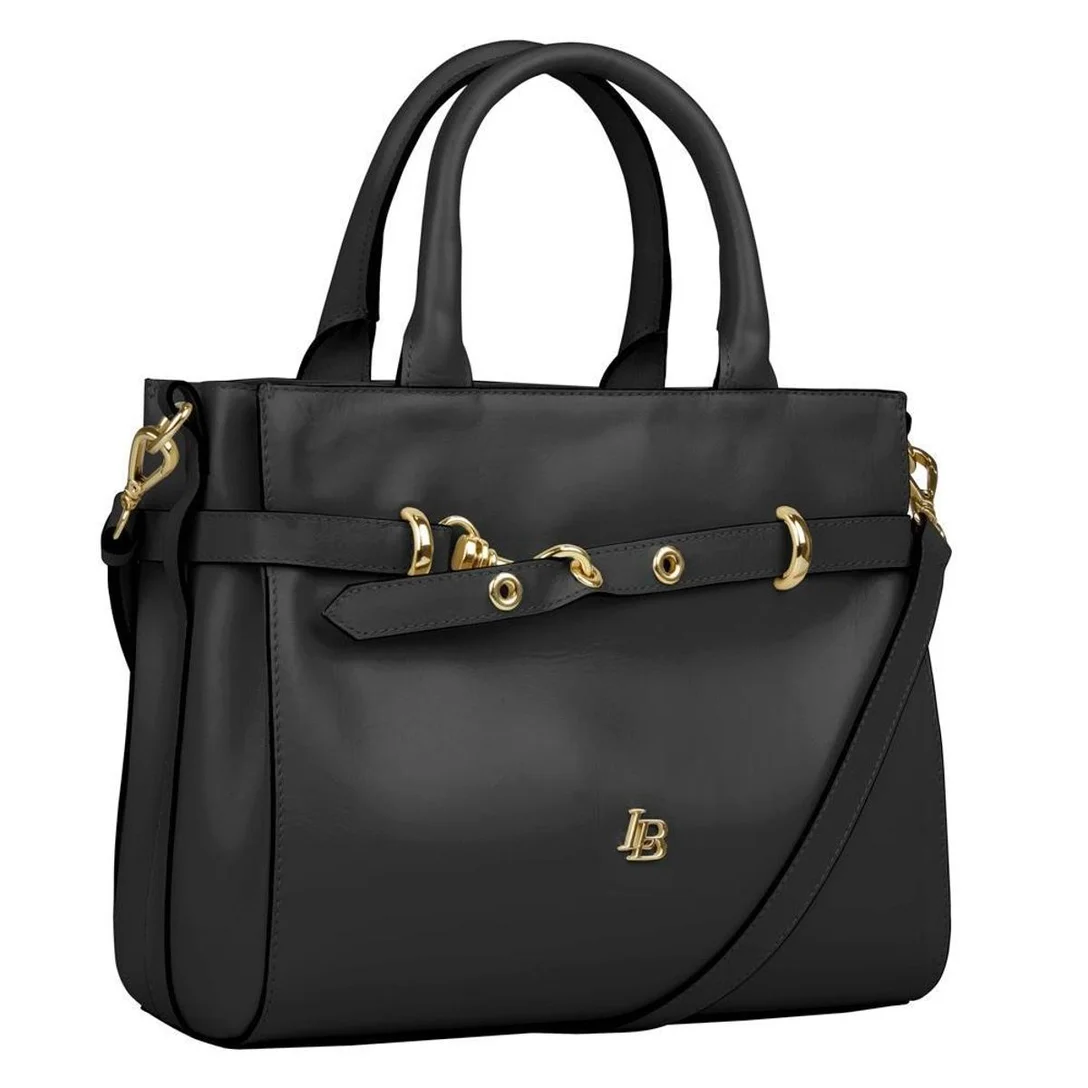 Bolsa tote Mirela, Linea Bella. Bolsa média com abertura principal em zyper de nylon, bolso posterior e bolso interno em zíper de nylon, com cinto em ilhós como detalhe fontal. Inclui divisória com zíper em nylon e porta celular e porta chaves. Inclui alça de mão e alça longa removível. Confeccionada em couro. Forro bege. Ferragens em tom ouro. Bordas pintadas a mão. Feita no Brasil.