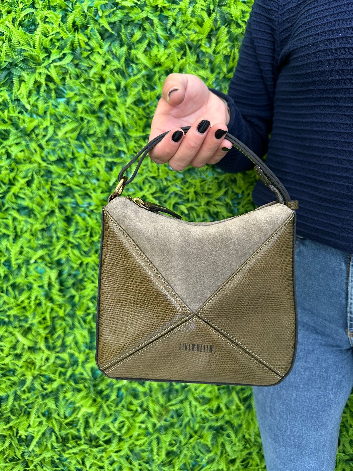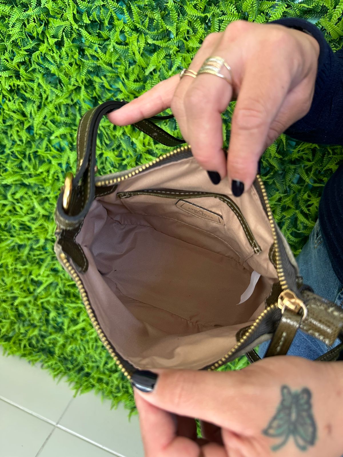 Bolsa tiracolo Celine, Linea Bella. Bolsa pequena, com abertura principal em zíper de metal. Inclui alça longa removível e bolso interno. Confeccionada em couro. Forro bege. Ferragens em tom onix. Bordas pintadas à mão. Feita no Brasil.