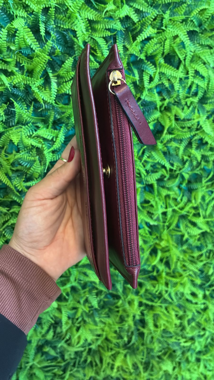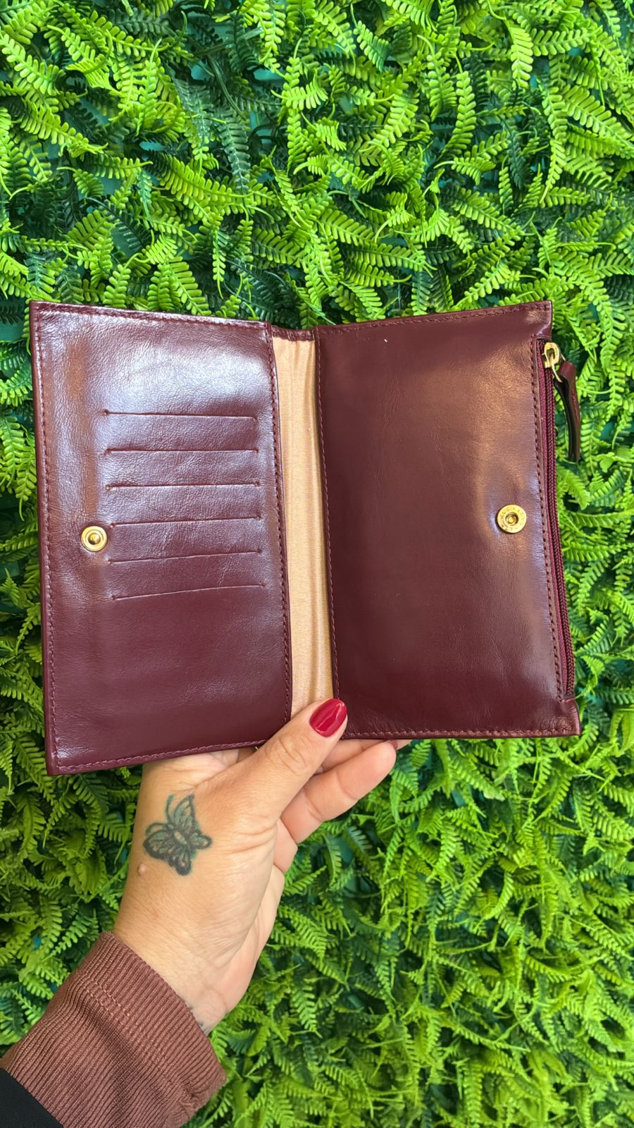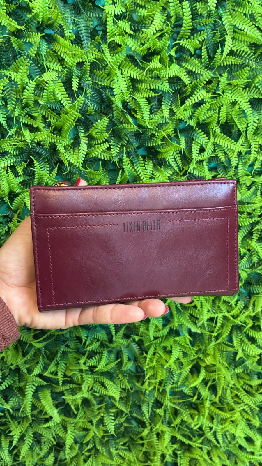 Linda carteira feminina da marca Linea Bella feita em couro com divisórias para dinheiro, cartões e documentos, e também fecho externo para niqueleira. Carteira segura, com fechamento em pressão. Excelente qualidade nos materiais empregados, acabamento impecável, metais inoxidáveis e forro em tecido.6 recortes para cartões de crédito1 fecho para niqueleira ou dinheiro ou documento3 espaços/divisões adicionais.