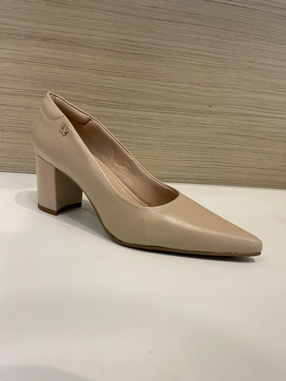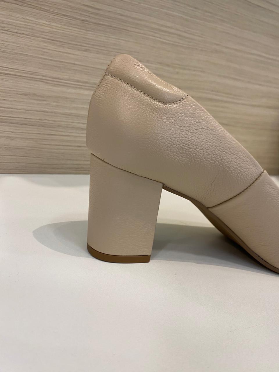 Lizielizi Scarpin Salto Bloco Couro Nude