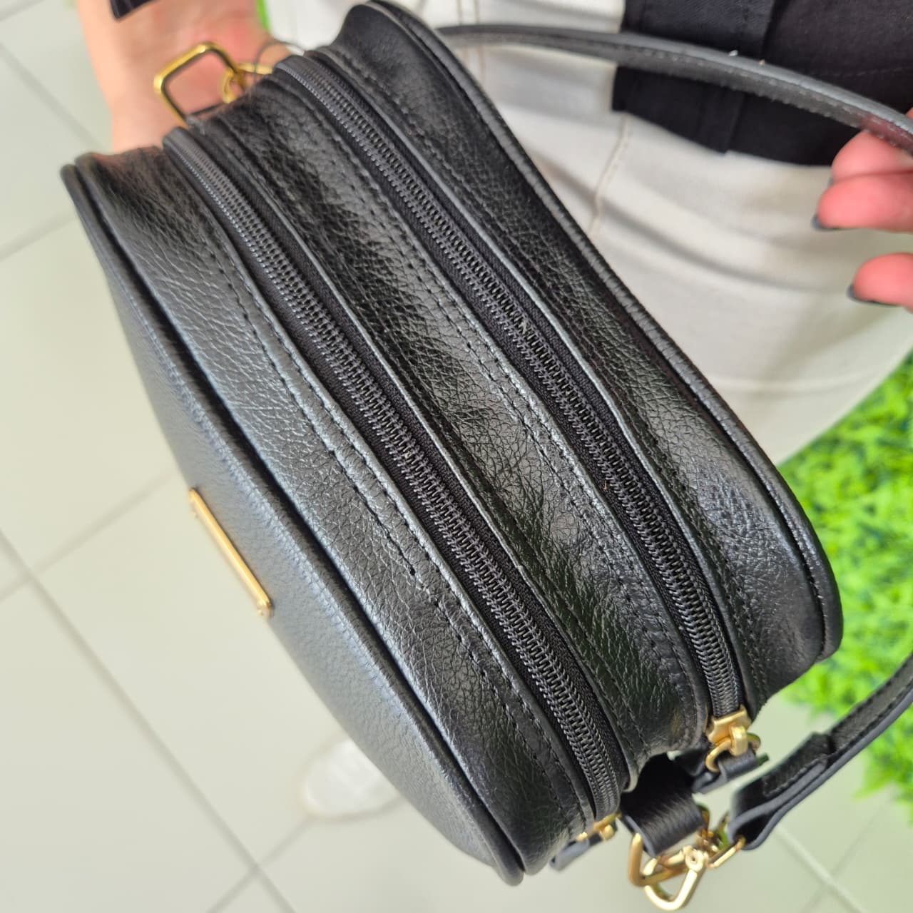 Com design compacto e funcional, conta com duas divisórias com zíper, alça regulável e removível, além de alça de mão estruturada – ideal para transitar com estilo entre o casual e o sofisticado.