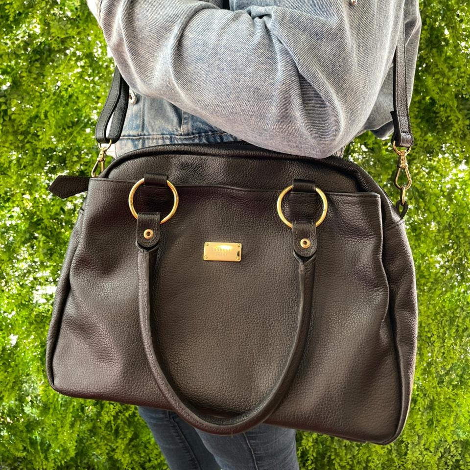 Bolsa Madame Sofia confeccionada em couro legítimo, sinônimo de elegância e durabilidade.