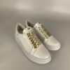 Eleve seu visual com este tênis em couro premium que equilibra perfeitamente a elegância do dourado com a versatilidade do branco. Com solado flatform e detalhes em spikes metálicos, ele é a escolha definitiva para quem não abre mão do estilo, mas precisa de agilidade na rotina.