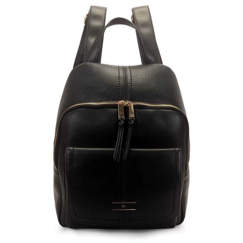 WJ Mochila Grande Com Bolso Frontal Detalhe Costuras Preta