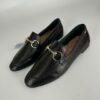 na cor preta, com design clássico e elegante. Possui bico arredondado, cabedal liso e detalhe metálico frontal que adiciona sofisticação ao modelo. A palmilha em couro proporciona maior conforto térmico e maciez ao caminhar, enquanto o solado baixo garante estabilidade e praticidade para o uso diário. Um calçado atemporal, ideal para compor looks profissionais ou casuais refinados.