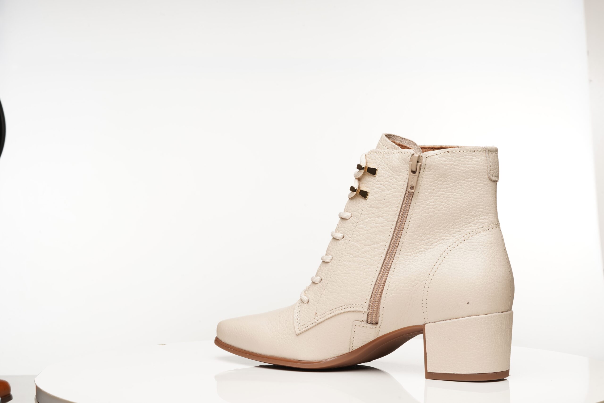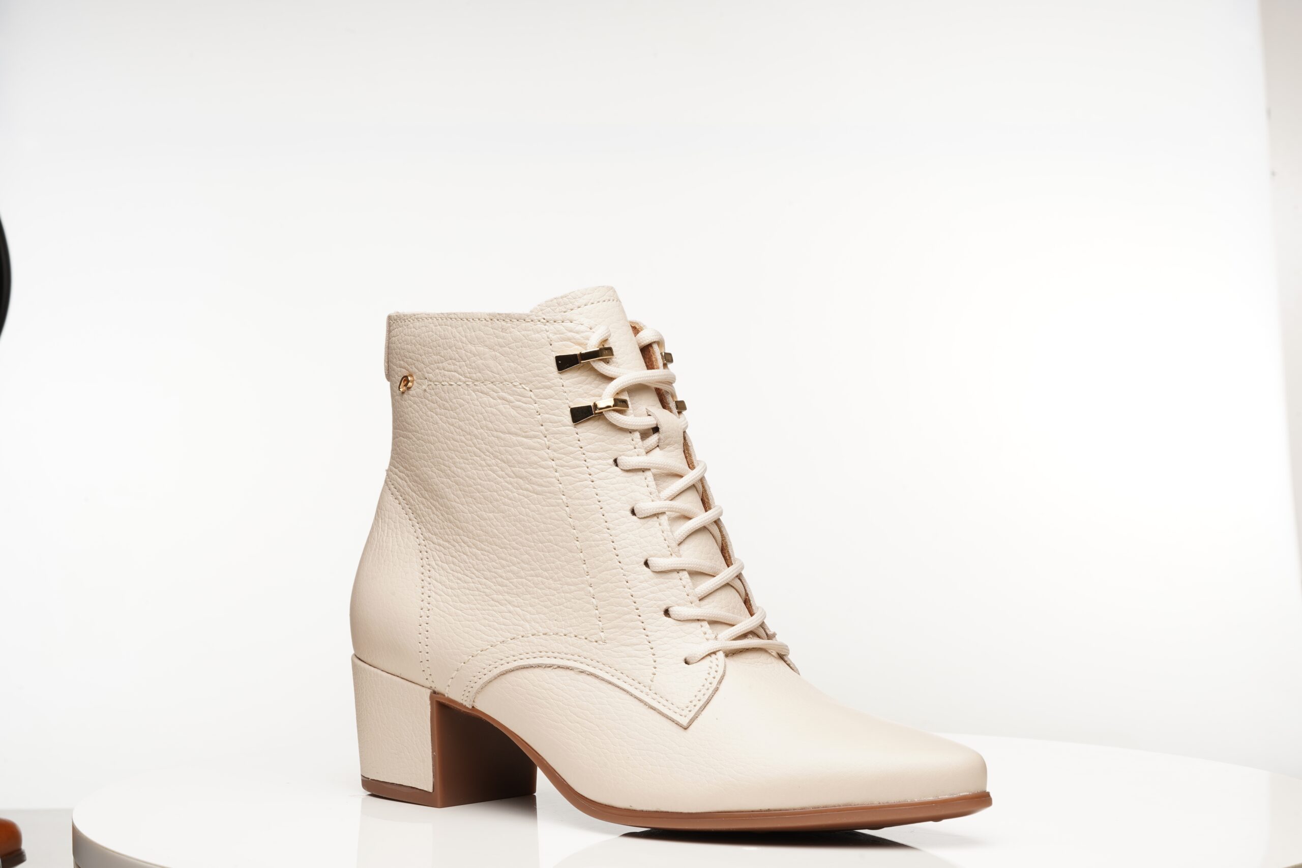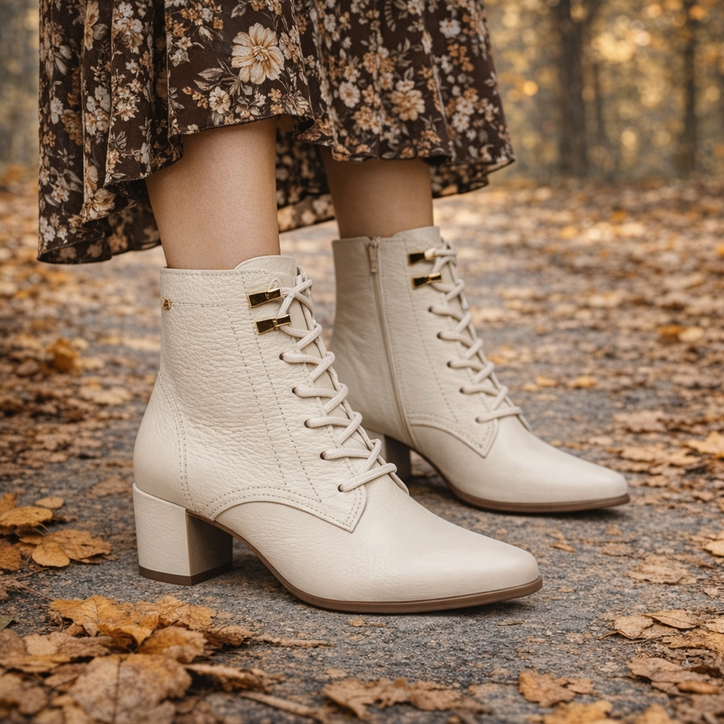 Bota confeccionada em couro legítimo, com textura levemente granulada que valoriza o acabamento e traz um visual sofisticado e contemporâneo. O modelo apresenta fechamento por amarração frontal, que garante ajuste perfeito ao pé e adiciona um toque moderno ao design. O bico levemente afinado alonga a silhueta com elegância, enquanto o salto bloco médio proporciona estabilidade e conforto para o uso no dia a dia. Versátil e atemporal, é ideal para compor produções que vão do casual ao mais alinhado, sempre com estilo e praticidade.