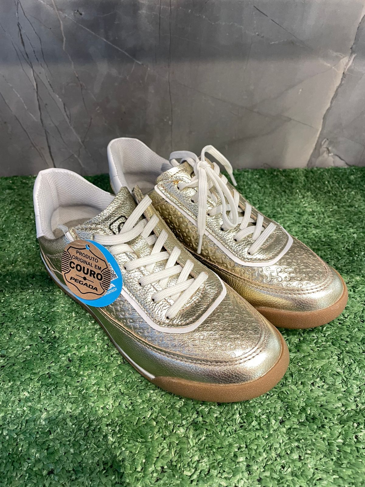 InÃcio / Tênis / Pegada Tênis 212805 Couro Ouro Branco Pegada Tênis 212805 Couro Ouro BrancoR$299,90 Tamanho: Nenhuma seleção Escolha uma opção343539Limpar Pegada Tênis 212805 Couro Ouro Branco quantidade Comprar SKU: Não aplicável Categoria: Tênis Marca:Pegada Calcular o Frete Não sei meu CEP Informação adicional Informação adicional Tamanho 34, 35, 39 Produtos relacionados Marina Mello Tênis 47040 Porcelana R$399,90 343536373839Comprar Marina Mello Tênis Sasha Dourado R$399,90 343536373839Comprar Usaflex Tenis Tecido New Blue R$369,90 343536373839Comprar Usaflex Tênis Slip On Camel Tricot R$289,90 34353637383940Comprar