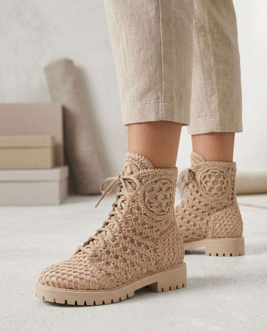Eleve seu visual com a Bota Combat Crochet, uma peça que redefine o conceito de calçado statement. Unindo a robustez da sola tratorada com a delicadeza do trabalho manual em crochê, esta bota é perfeita para quem busca autenticidade e textura em cada passo.