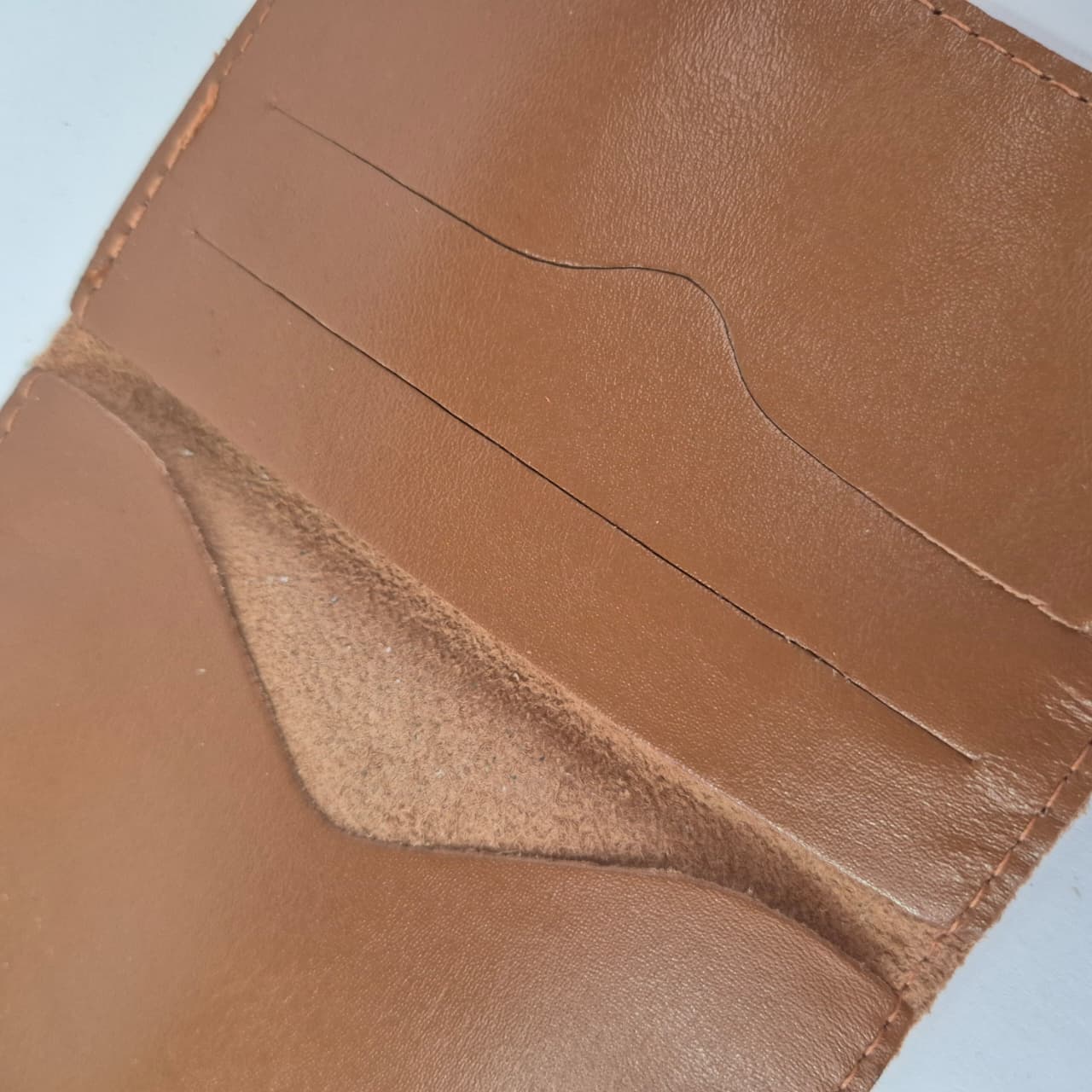 Porta-cartão em couro legÃtimo, feito à mão com acabamento impecável. Compacto e funcional, conta com compartimentos internos para cartões e documentos essenciais, mantendo tudo organizado com elegância.