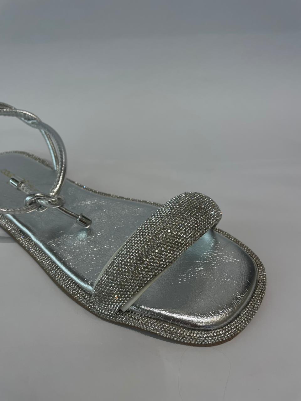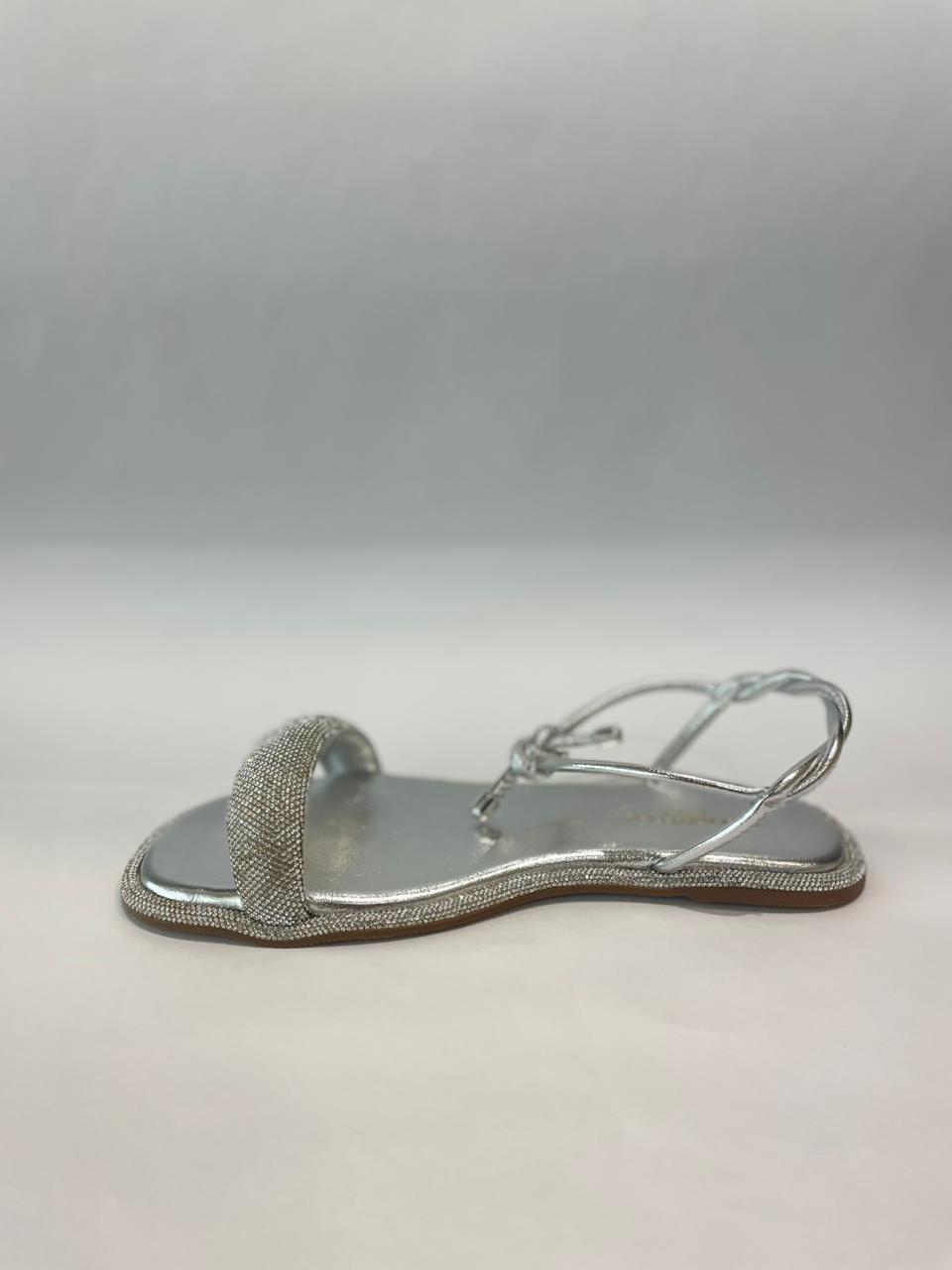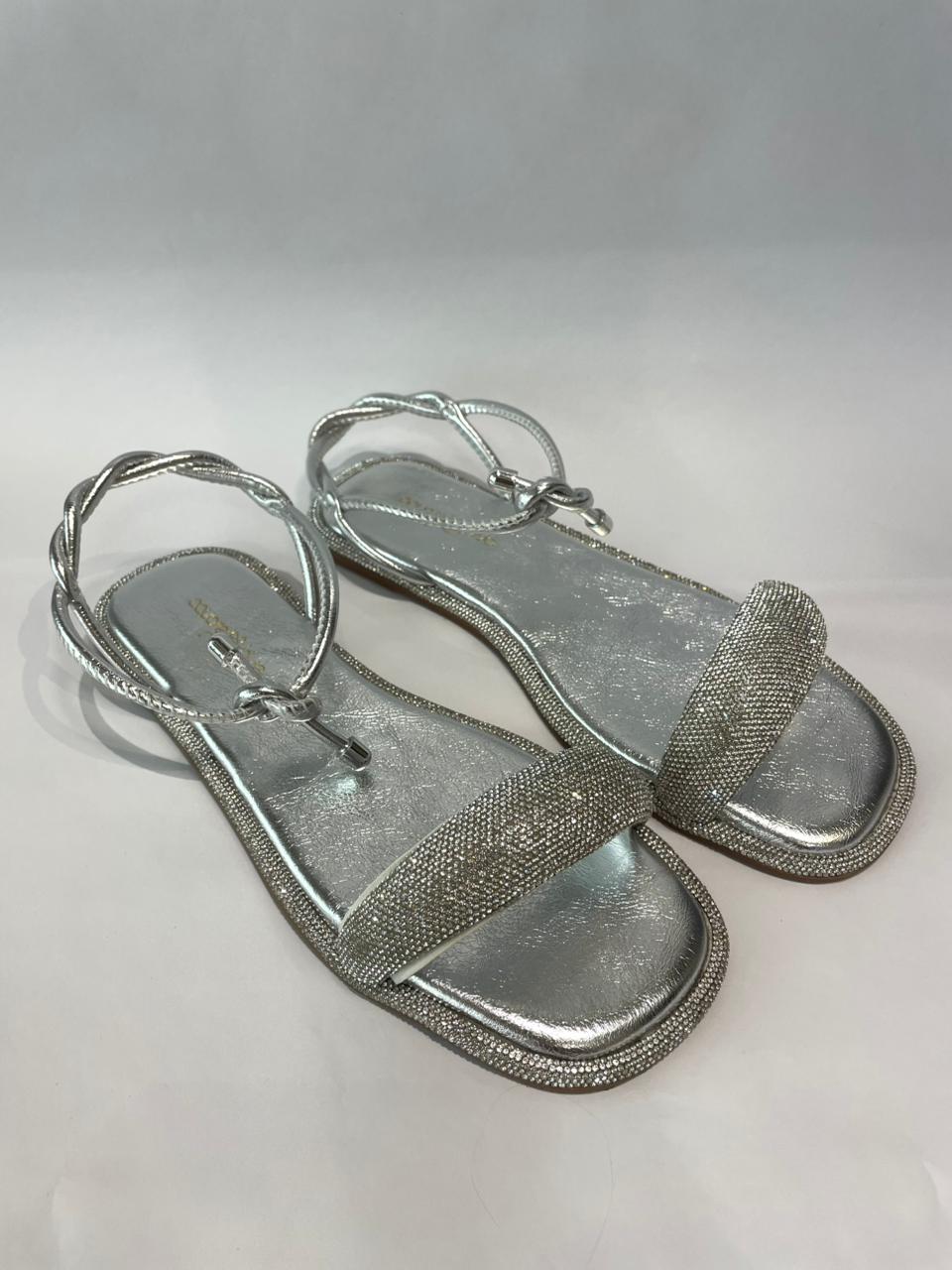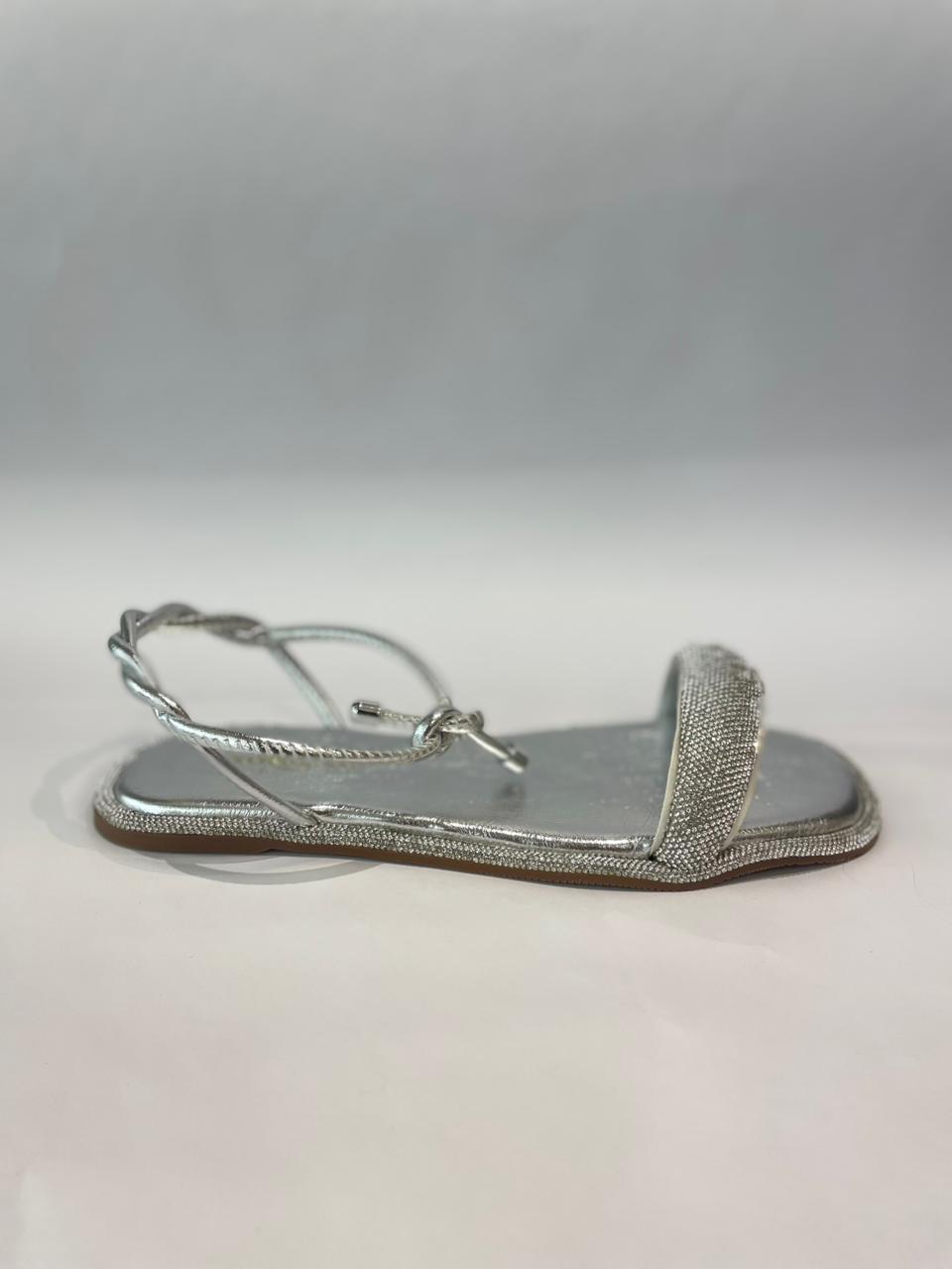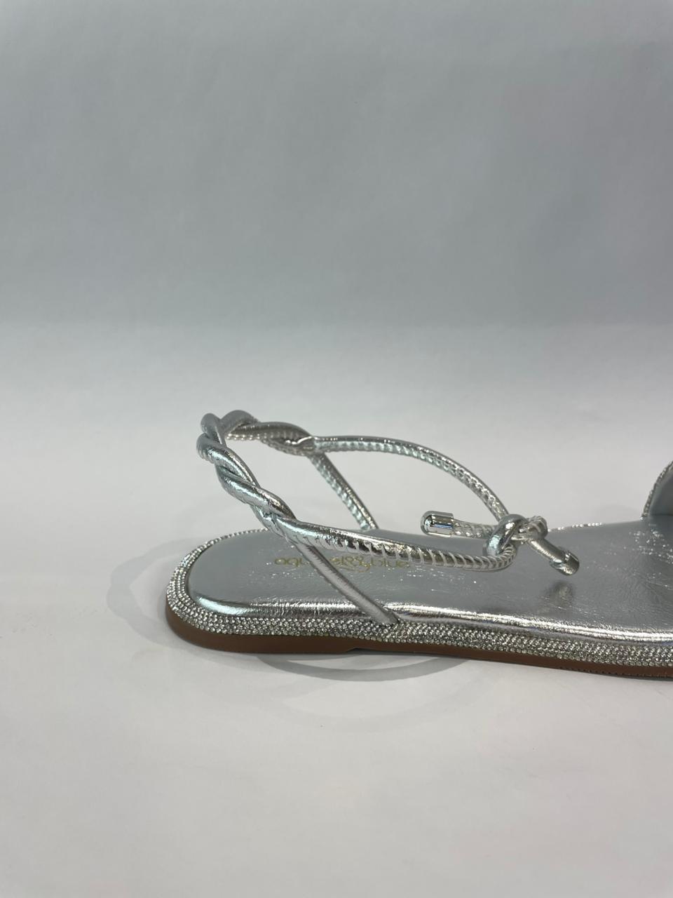 A sandália Aquarela prata trançada traz um toque de luminosidade elegante, com tiras delicadamente entrelaçadas e acabamento com brilho sutil, perfeito para destacar os pés com leveza.