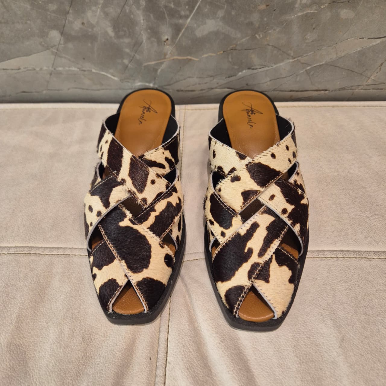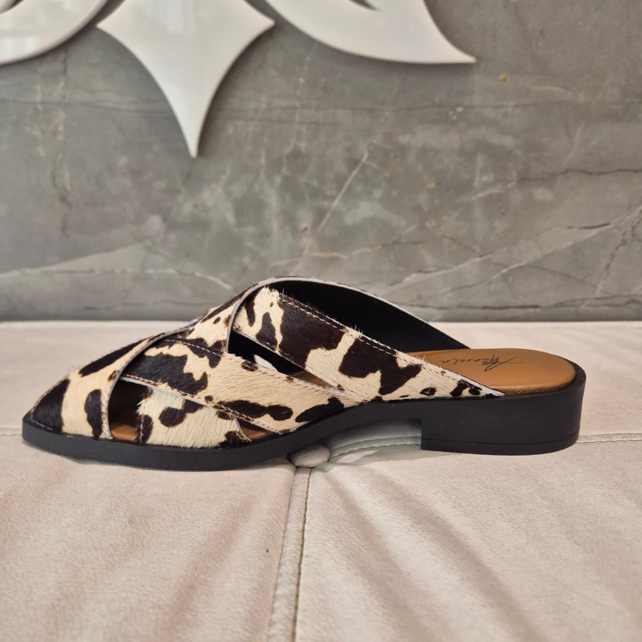 Autêntica, poderosa e perfeita para quem ama um look cheio de personalidade — a rasteira ETE em couro vaca legítimo traz o charme do animal print em uma proposta moderna e superconfortável.
