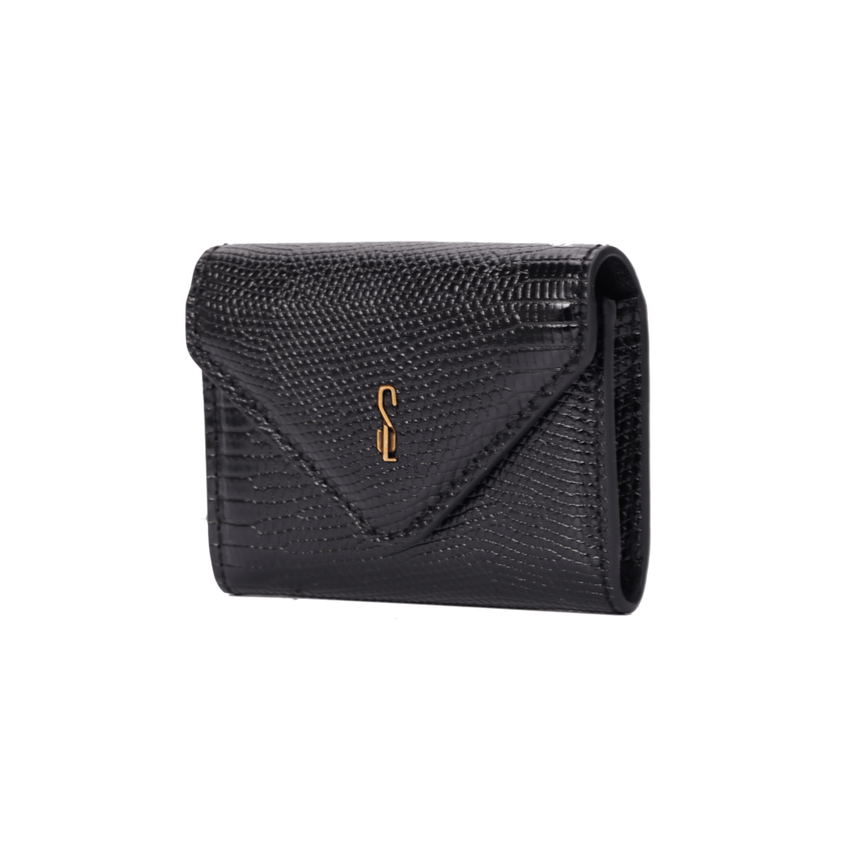 Santa Lolla Porta Cartão Envelope Lizard Preto