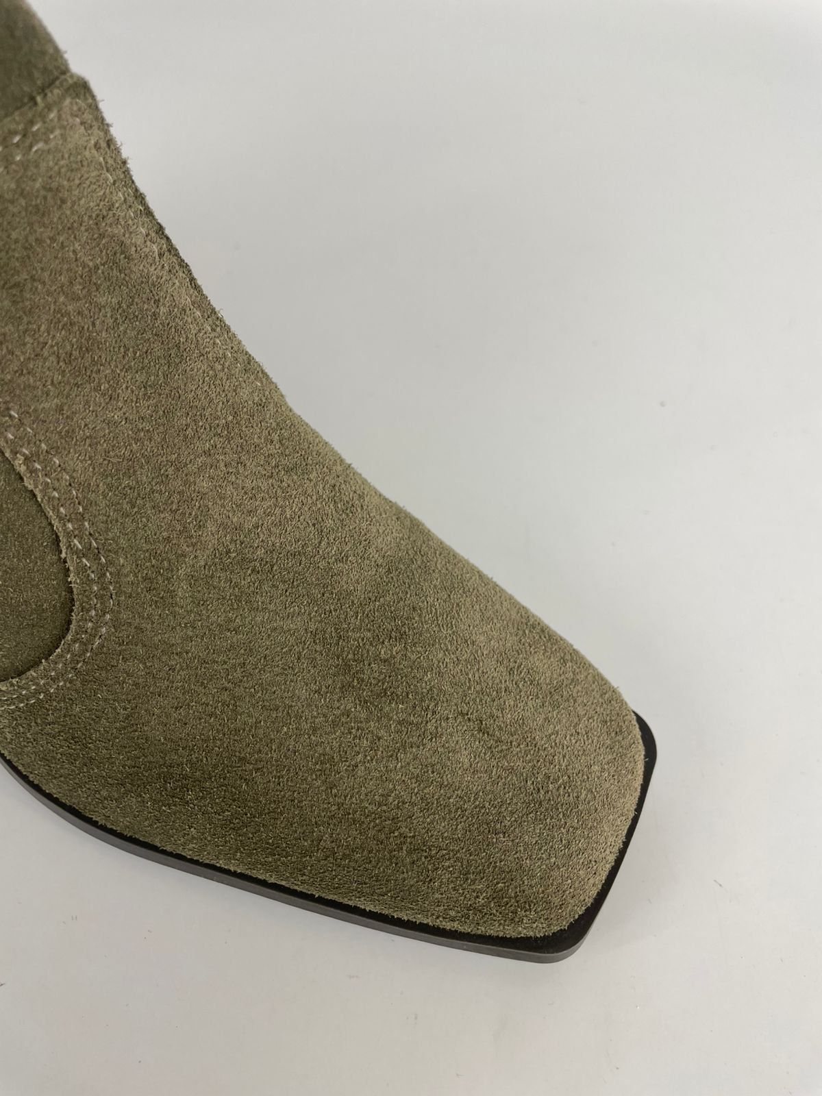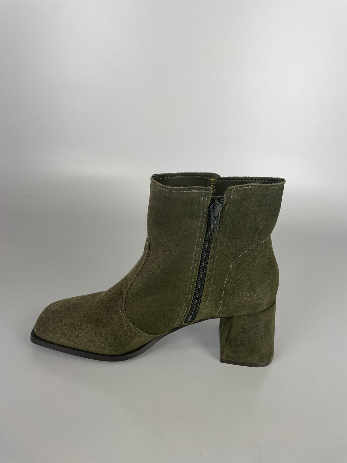 Essa bota de cano curto em camurça da Santa Lolla é a definição de elegância atemporal com um toque moderno. O tom verde oliva profundo aliado ao bico quadrado traz um ar sofisticado e urbano, perfeito para quem busca transitar do escritório ao happy hour com estilo e atitude.