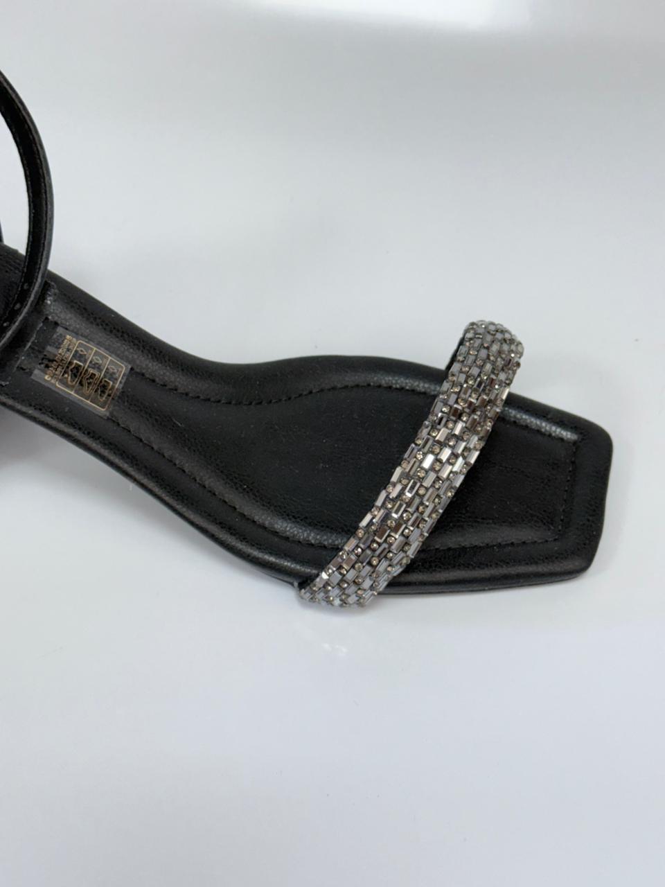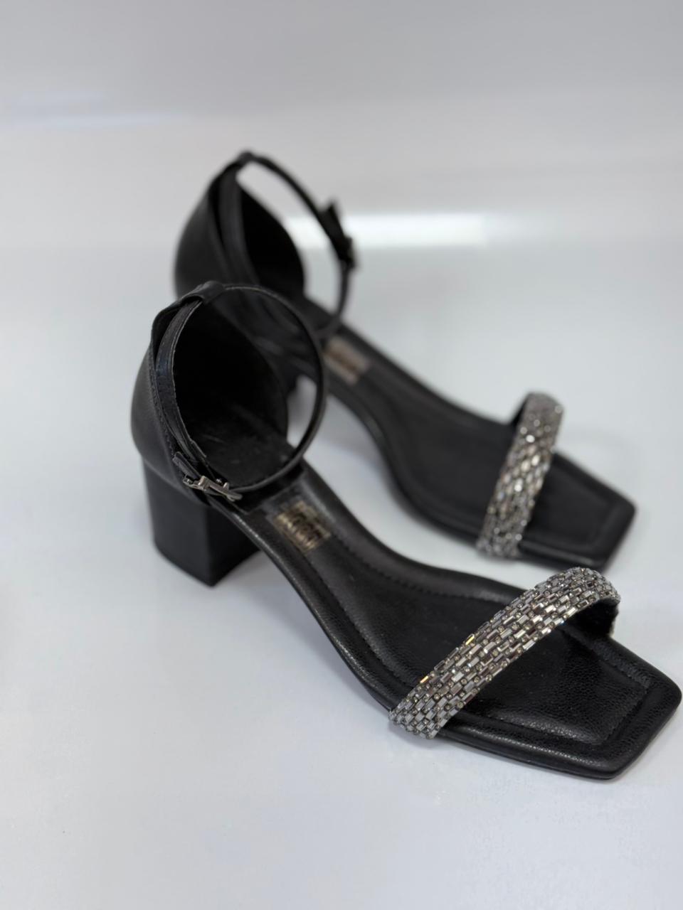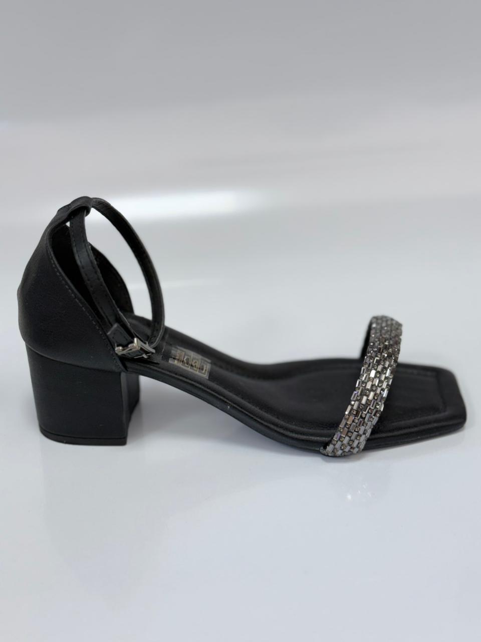 Santalolla Sandália Salto Bloco – Com Brilho Sintético Preto
