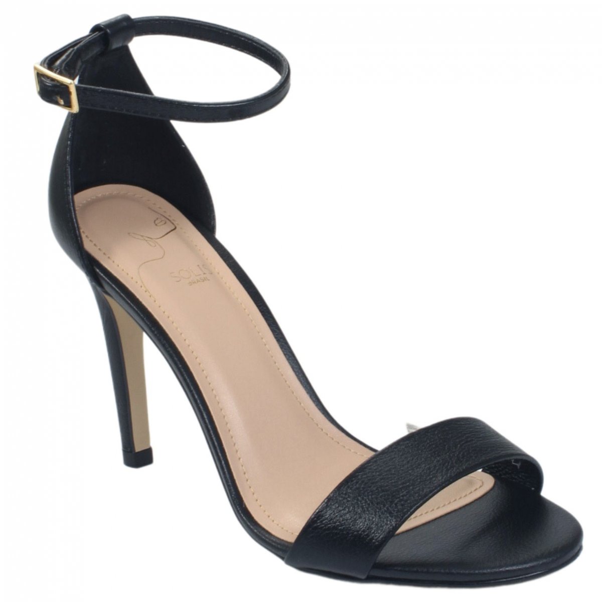 Solis Sandália Salto Fino Couro Preto