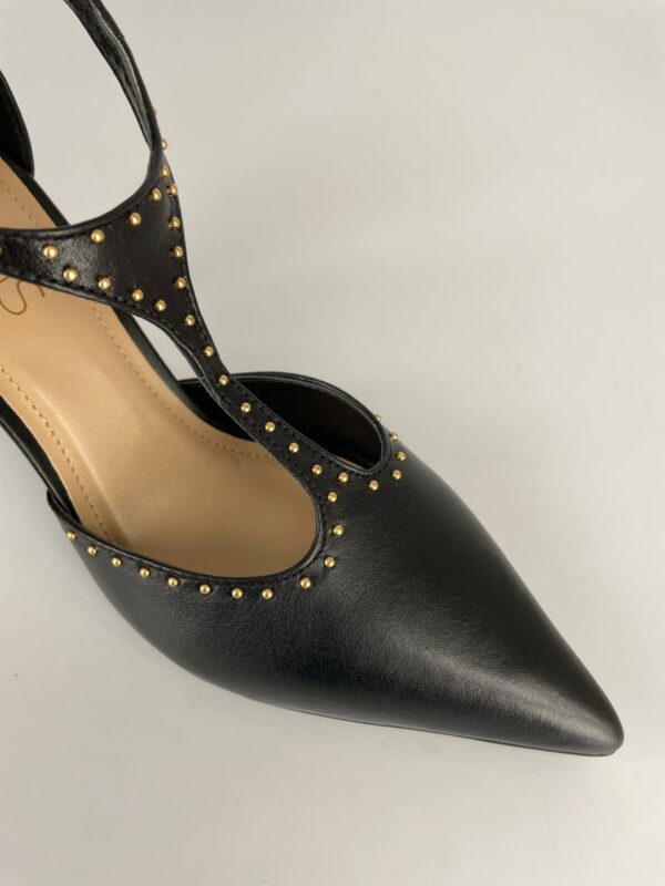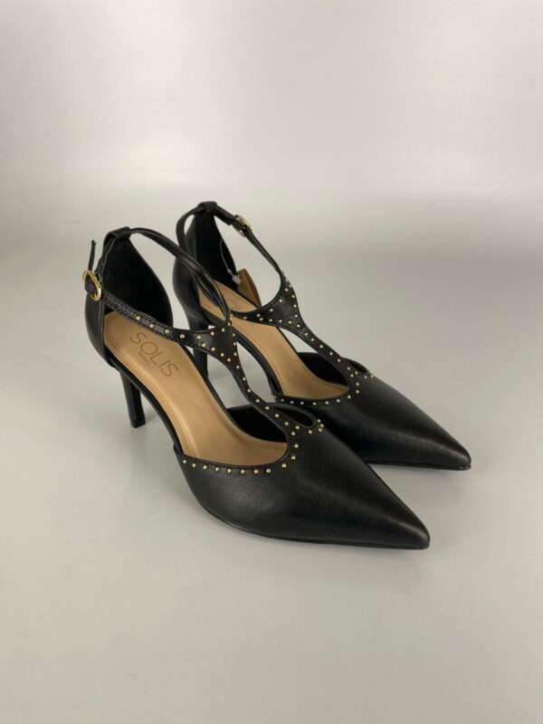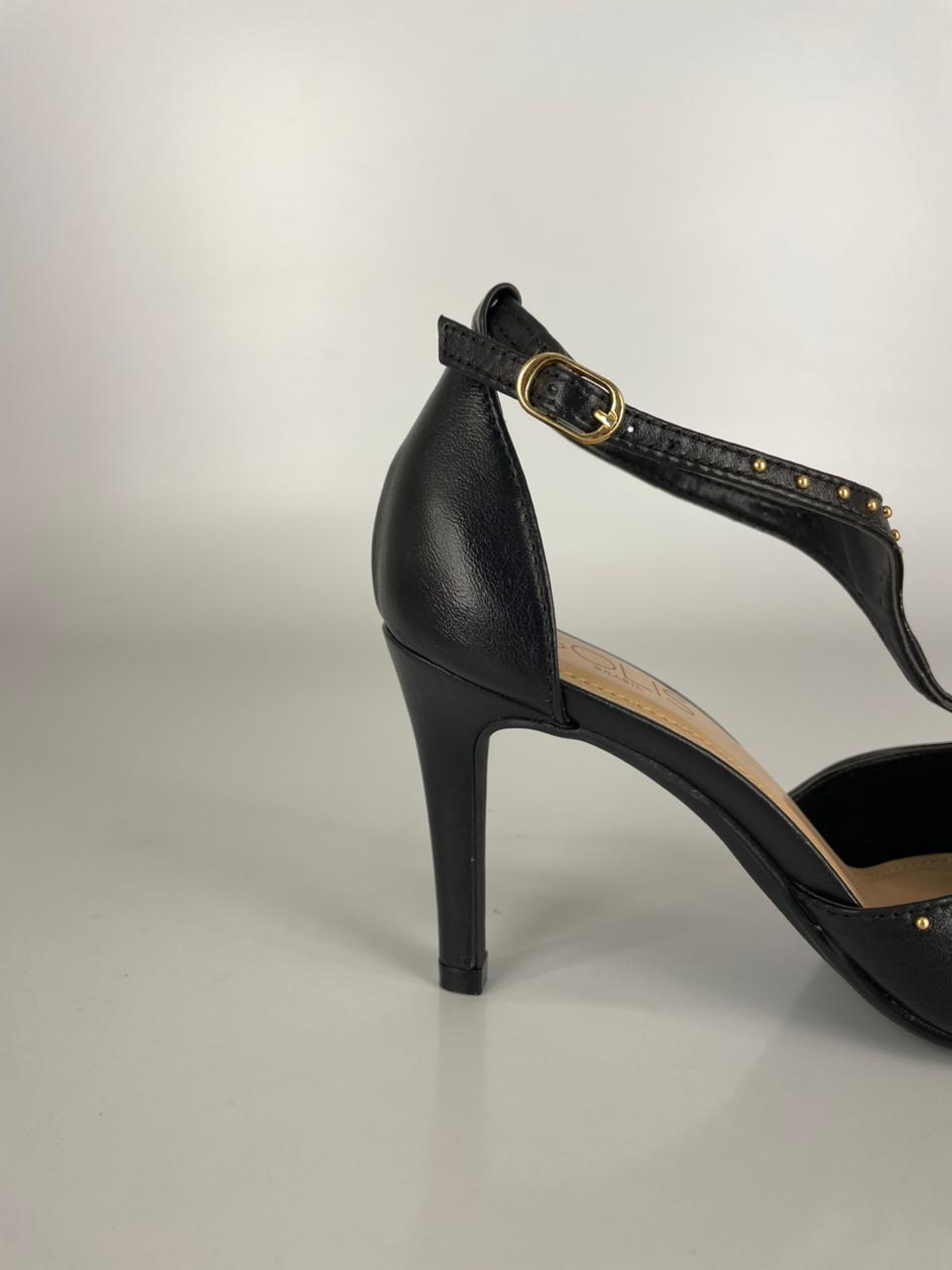 O Scarpin Nely Solis Brasil é a tradução da elegância com um toque de ousadia. Seu design sofisticado em couro legítimo ganha destaque com o recorte em T e aplicações metálicas sutis ao longo das tiras e contorno do cabedal. O salto alto fino traz imponência e feminilidade, enquanto a amarração delicada no tornozelo garante segurança ao caminhar. Ideal para eventos especiais, jantares e ocasiões que pedem presença marcante.