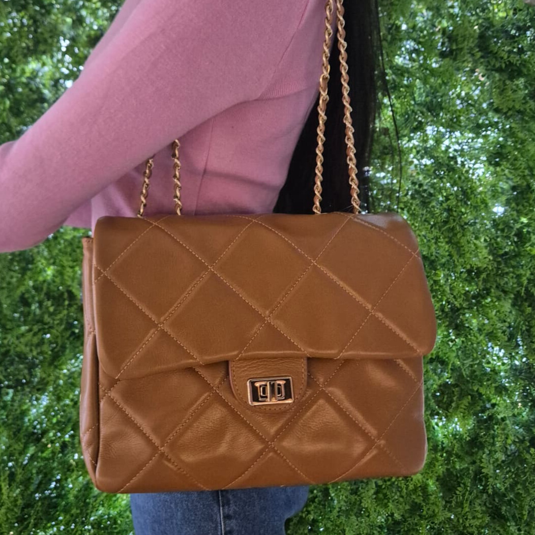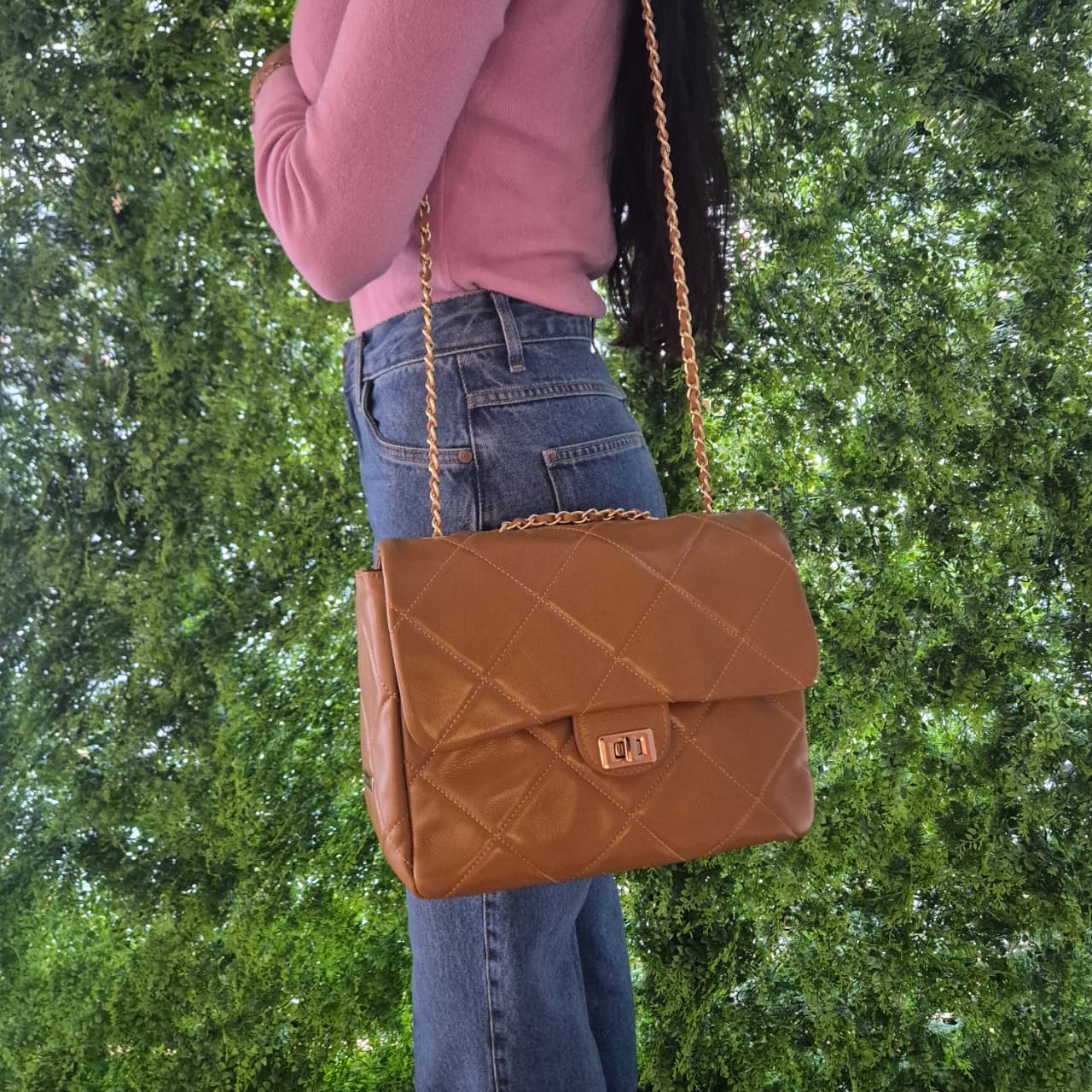 Bolsa Spirit em couro legítimo, com design clássico inspirado na elegância atemporal da Chanel.