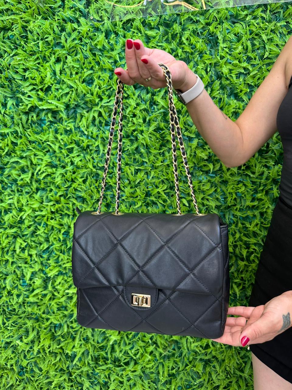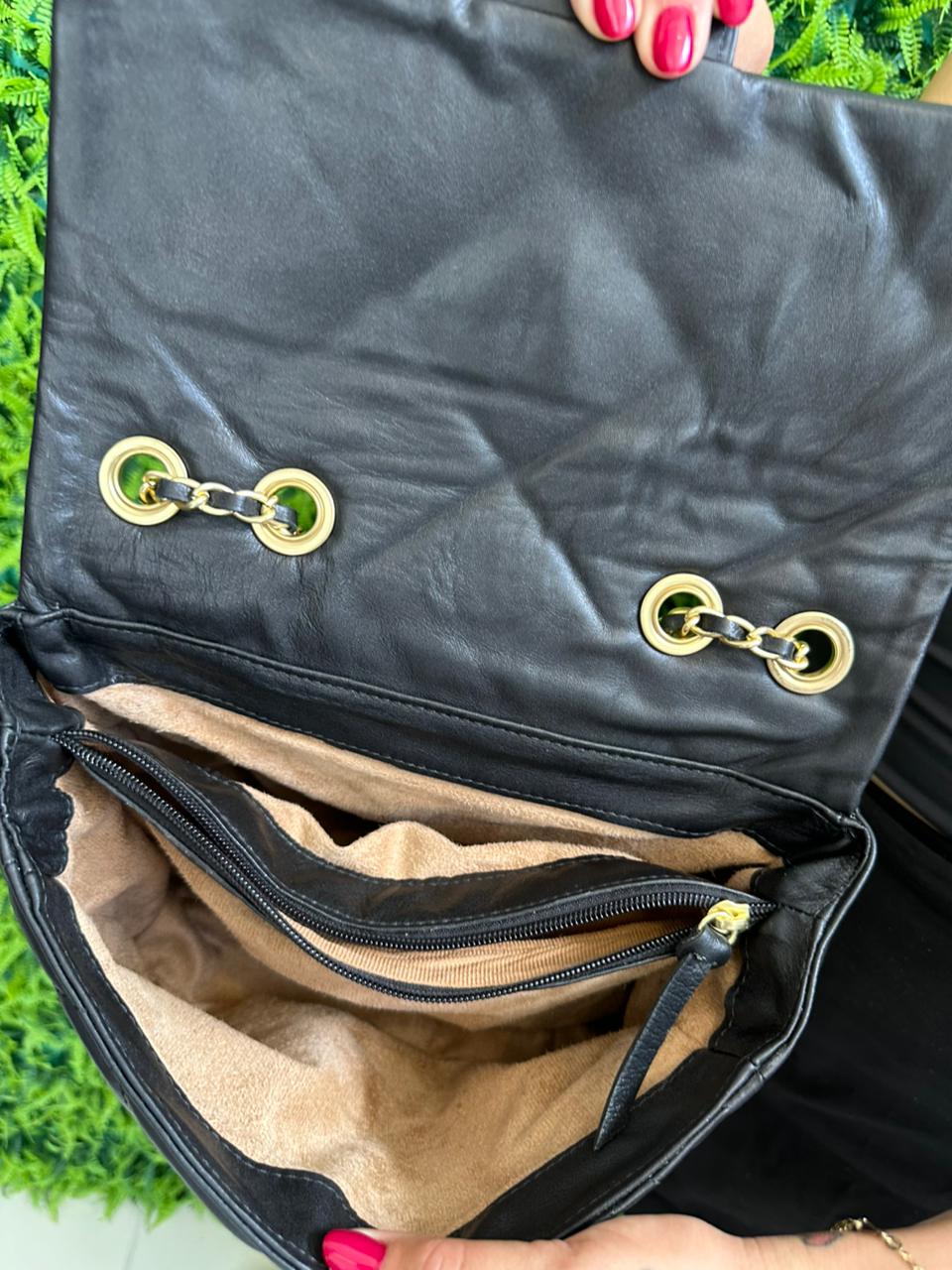 Bolsa Spirit em couro legítimo, com design clássico inspirado na elegância atemporal da Chanel.