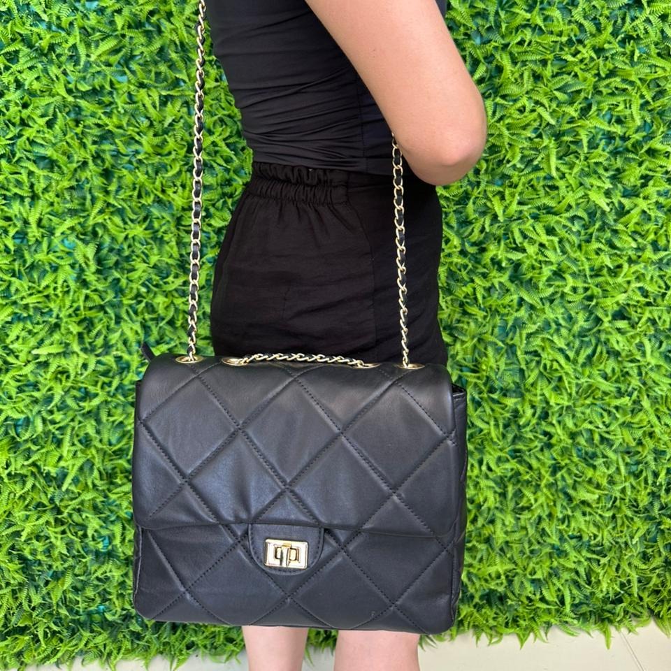 O matelassê delicado, o fecho metálico dourado e a alça em corrente trazem sofisticação e charme na medida certa. Compacta e funcional, é perfeita para elevar produções do dia a dia ou completar looks noturnos com um toque de luxo discreto.