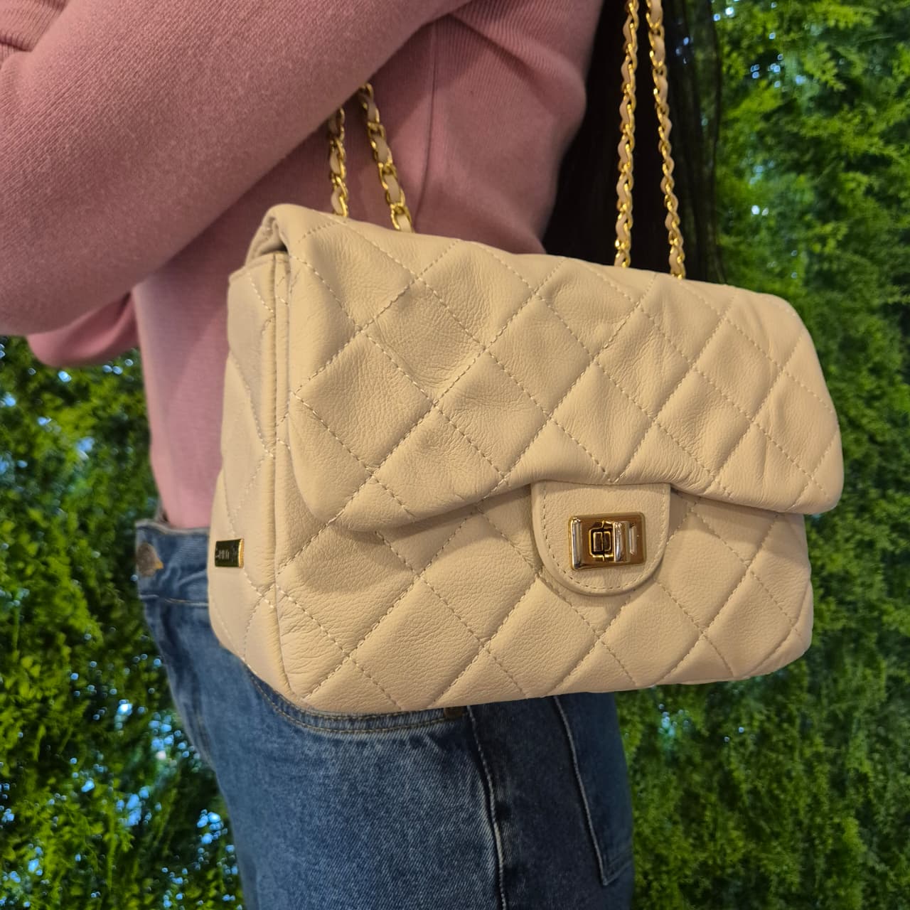 Bolsa Spirit em couro legítimo, com design clássico inspirado na elegância atemporal da Chanel.