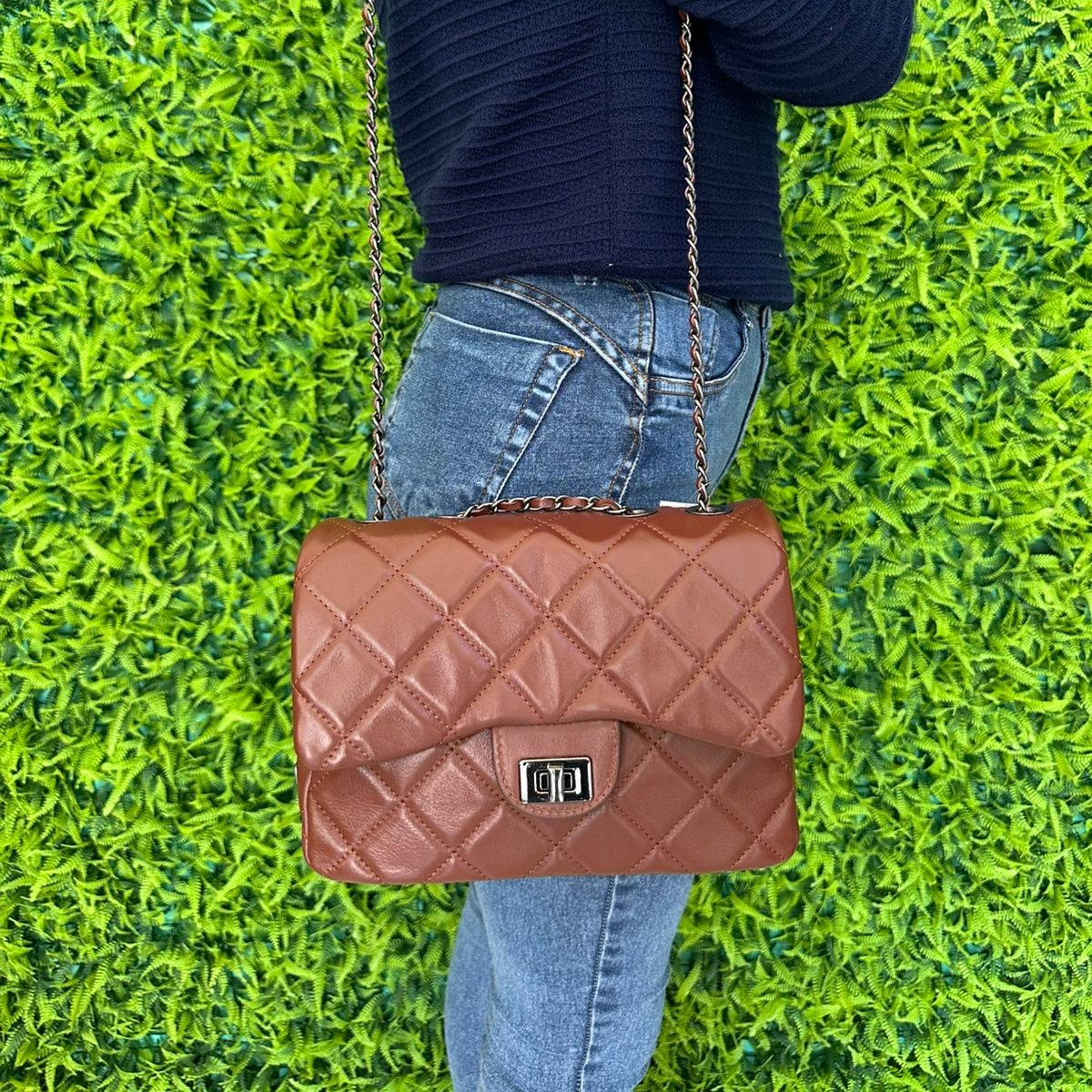 Bolsa Spirit em couro legítimo, com design clássico inspirado na elegância atemporal da Chanel.