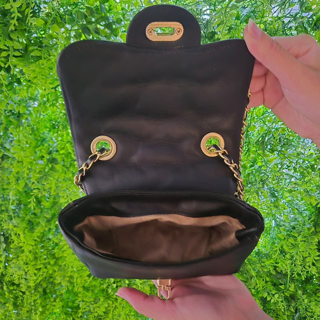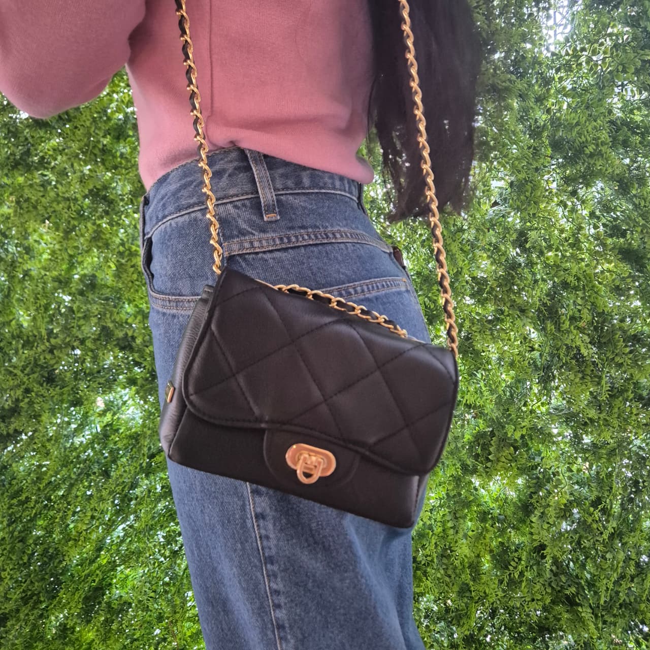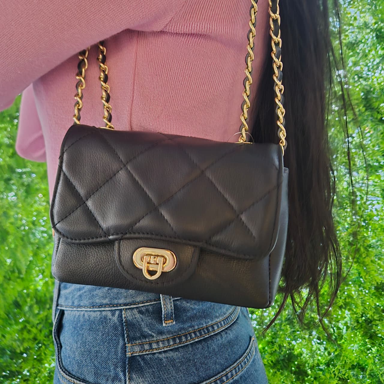 O matelassê delicado, o fecho metálico dourado e a alça em corrente trazem sofisticação e charme na medida certa.Compacta e funcional, é perfeita para elevar produções do dia a dia ou completar looks noturnos com um toque de luxo discreto.