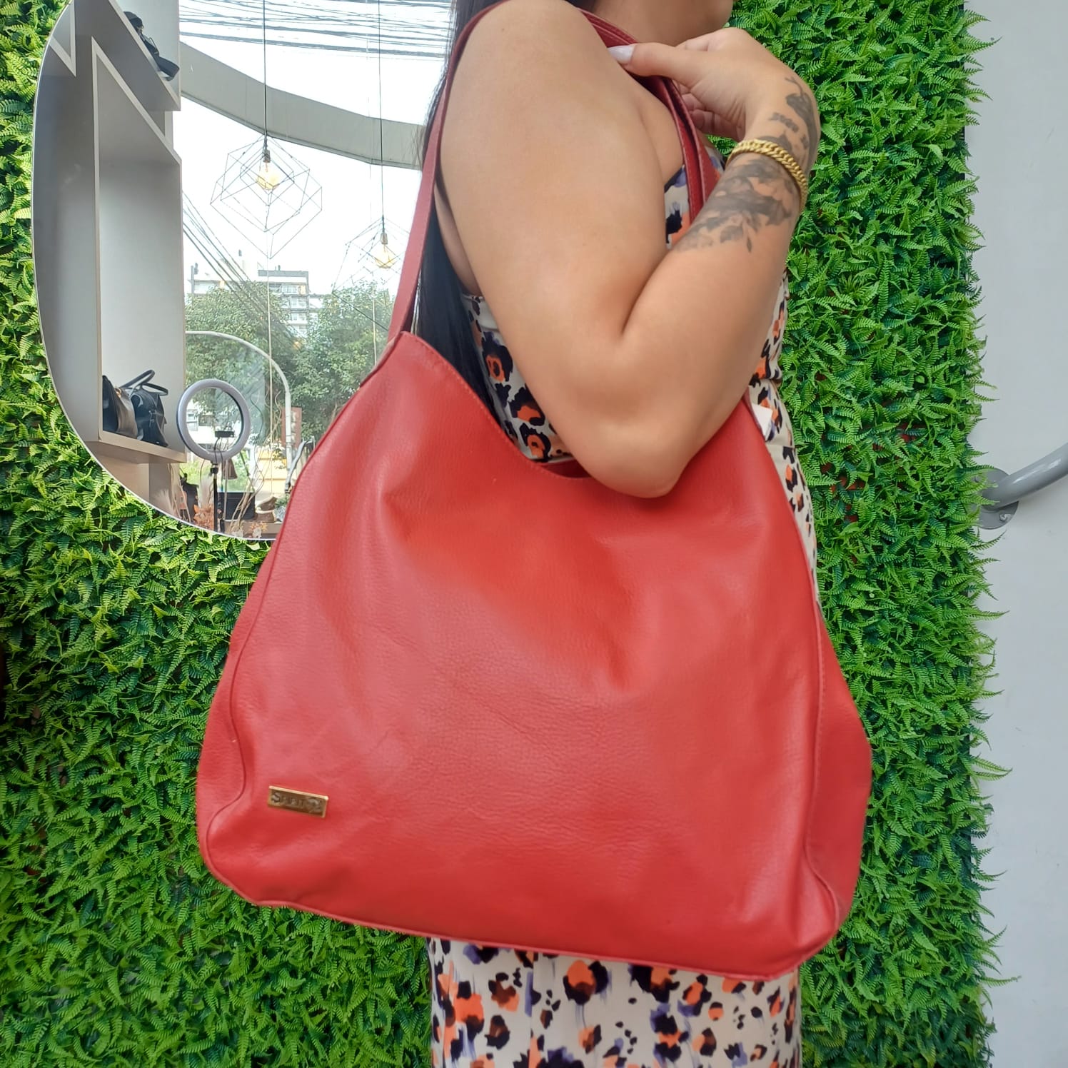 Feita em couro natural de toque macio, apresenta forro claro, costuras reforçadas e alça de ombro confortável.