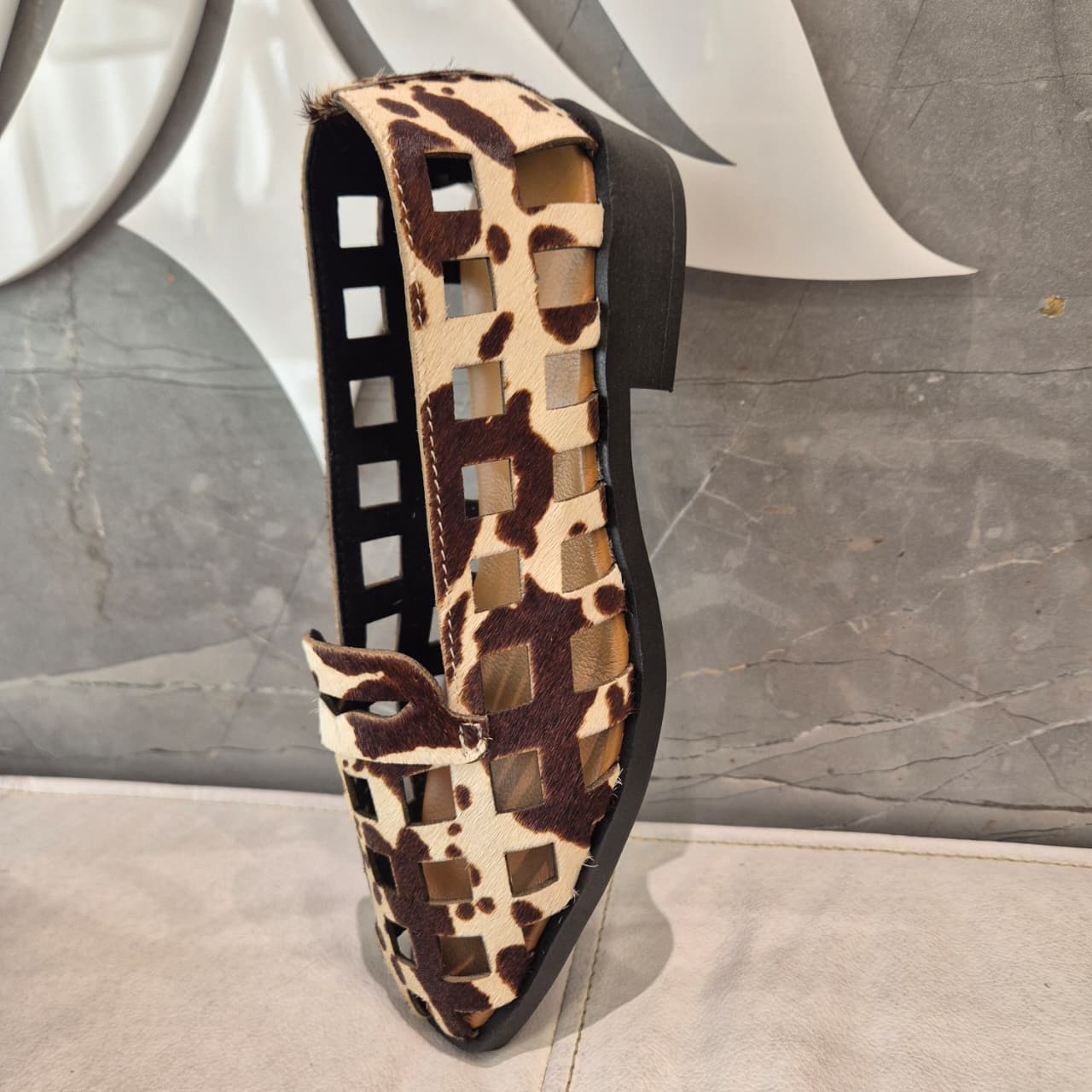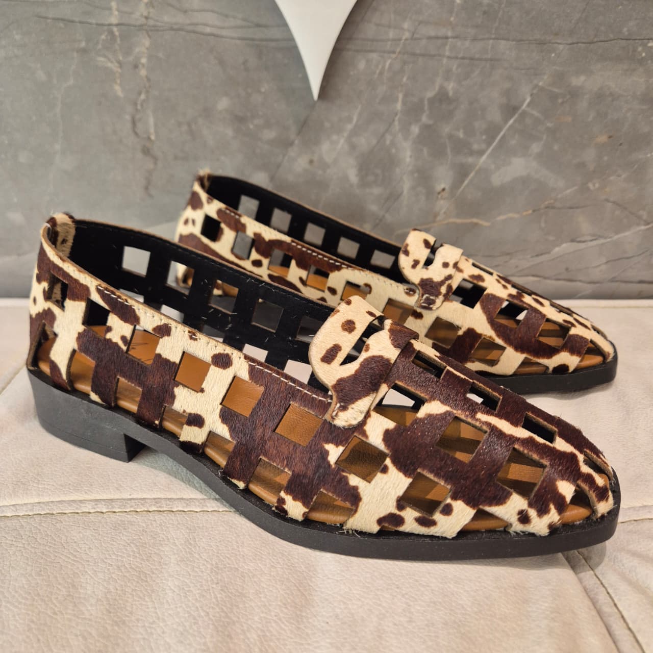 Aquarela Mocassim Couro Vazado Cow