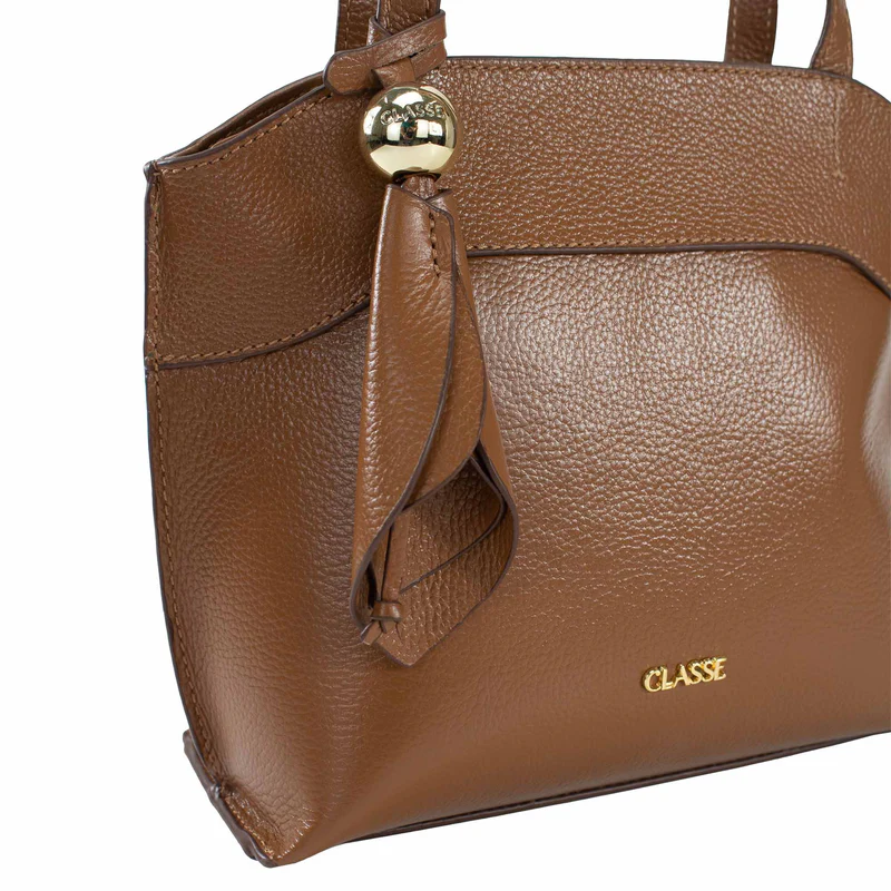 O destaque especial fica por conta do bag charme exclusivo Classe – uma flor delicada em couro, que adiciona feminilidade e identidade à peça.