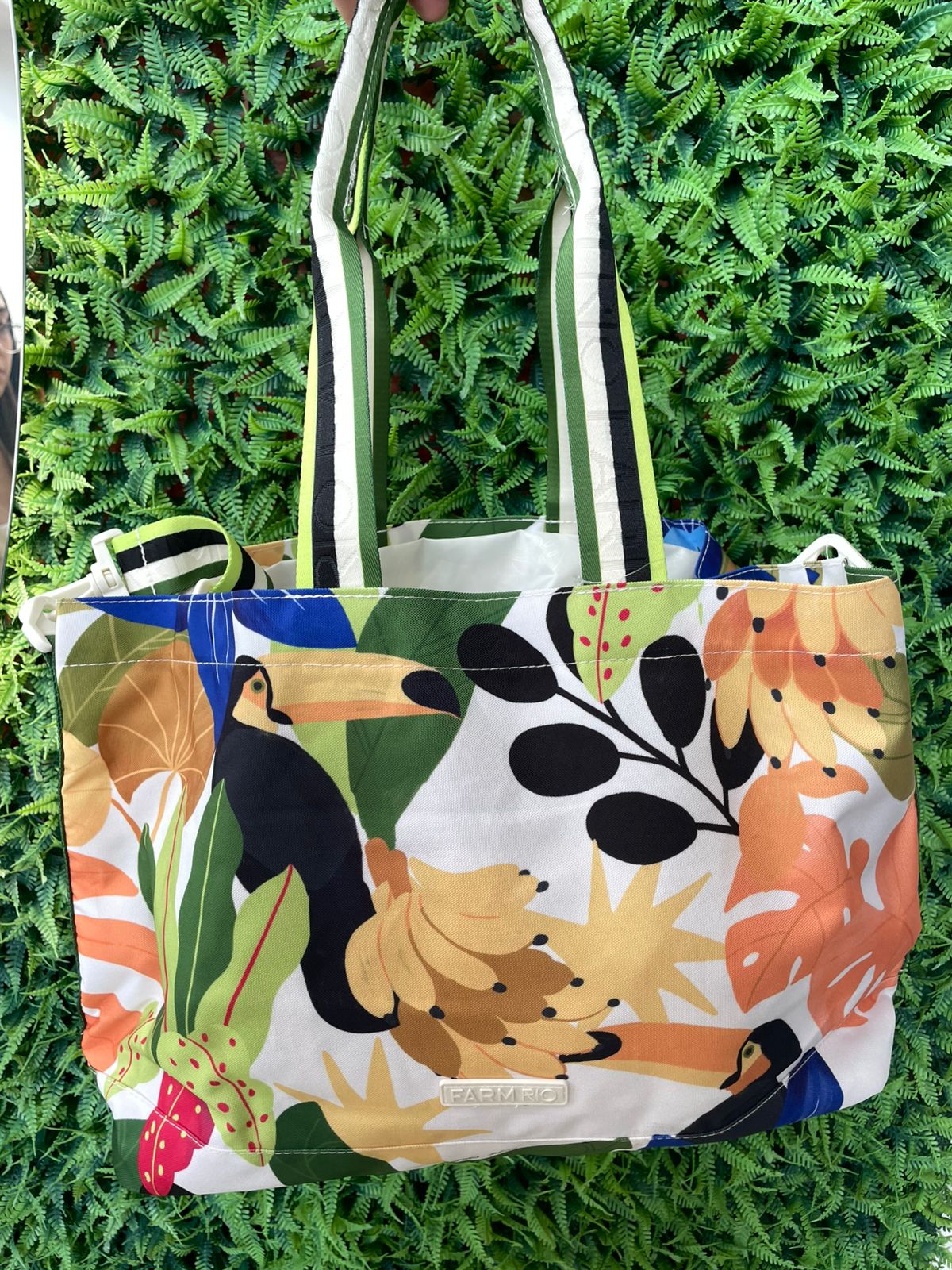 Esta é a Bolsa Tote Farm Sunset, a peça que faltava para iluminar o seu visual com a energia do entardecer tropical. Com uma estampa icônica que destaca tucanos e bananas em tons vibrantes, ela carrega toda a essência solar da Farm. Além das alças de mão estruturadas, ela conta com uma alça lateral ajustável, garantindo que você tenha conforto e estilo em qualquer ocasião, do pós-praia ao compromisso na cidade.