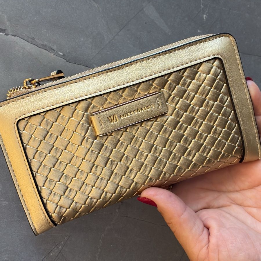 A Carteira WJ Acessórios combina design elegante com funcionalidade perfeita para o dia a dia. Seu acabamento dourado com textura trançada traz um toque moderno e luxuoso, ideal para quem ama estilo sem exageros.