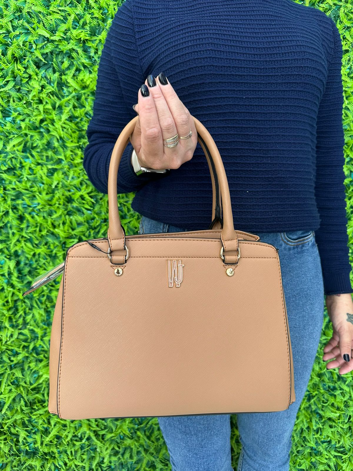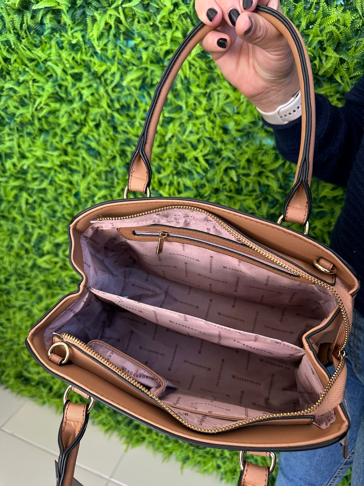 WJ Bolsa Satchel Media Bicolor Com Bolso Frontal