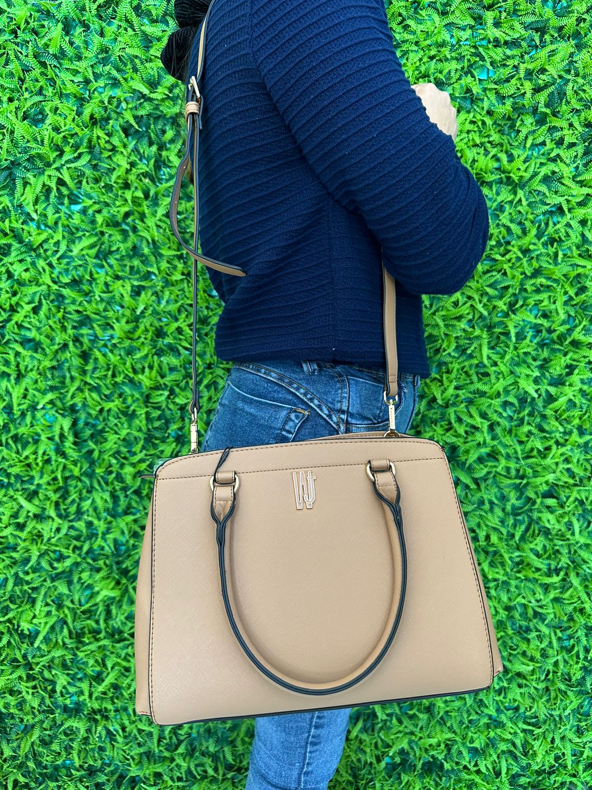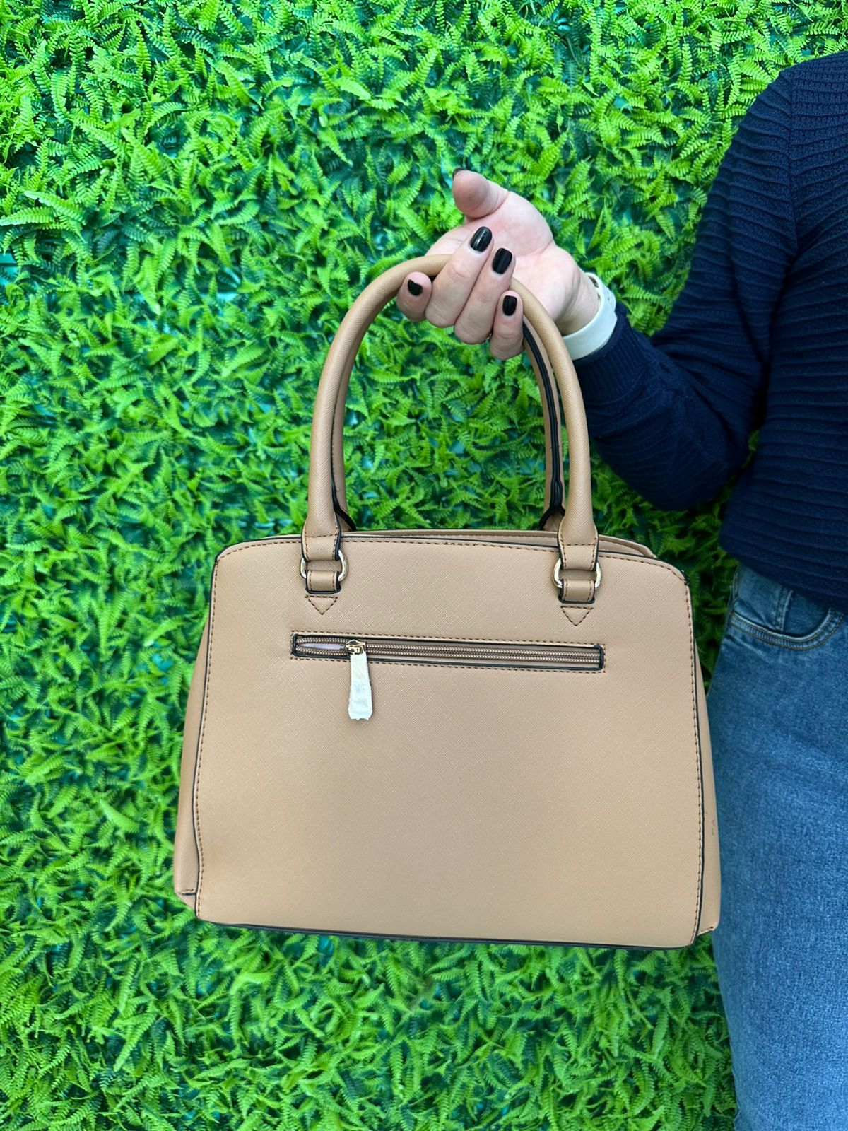 Bolsa satchel grande e estruturada, com design monocromático sofisticado. Ideal para o dia a dia, combina elegância e funcionalidade, oferecendo amplo espaço interno e alças confortáveis para um visual impecável.