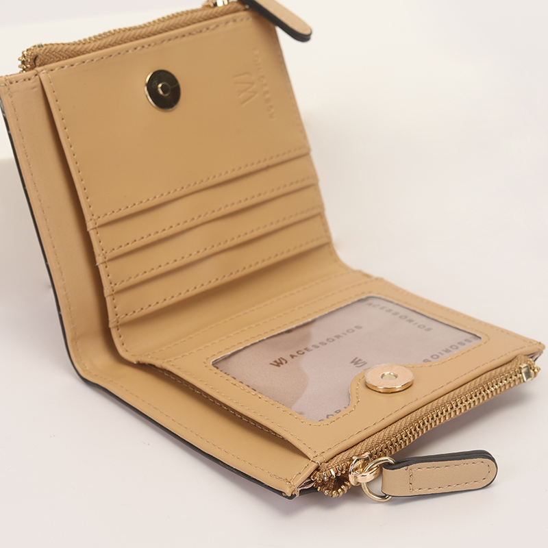 A carteira pequena tem compartimentos práticos que unem estilo e funcionalidade.
