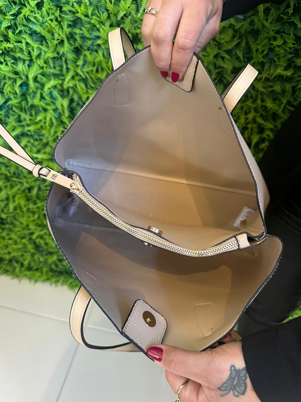 Seu design estruturado em couro sintético com textura leve traz um toque refinado, enquanto o interior espaçoso com bolso central com zÃper garante praticidade e organização para todos os momentos.