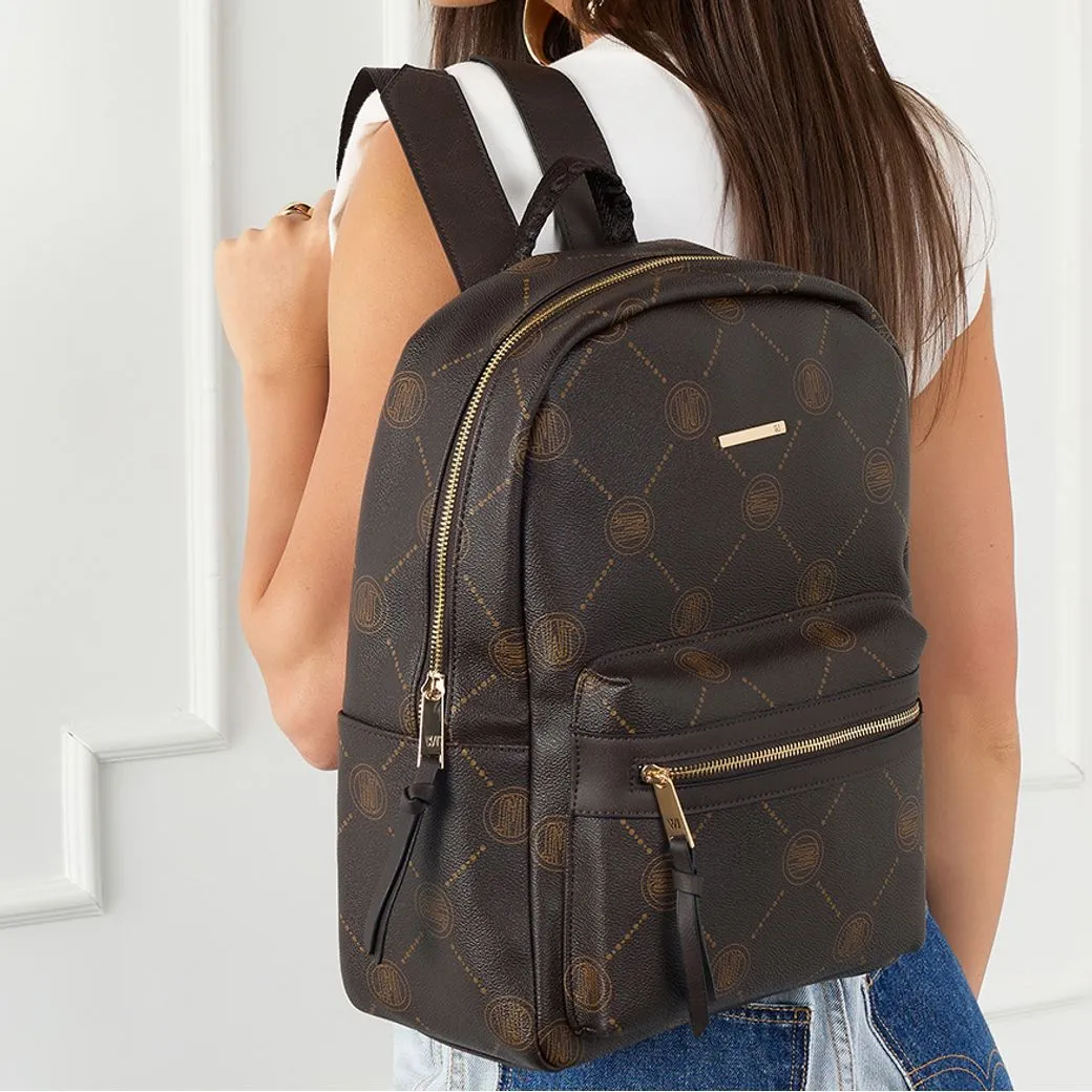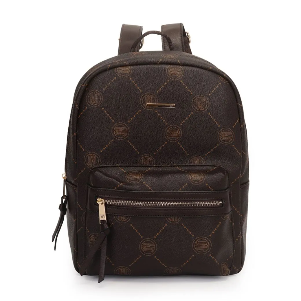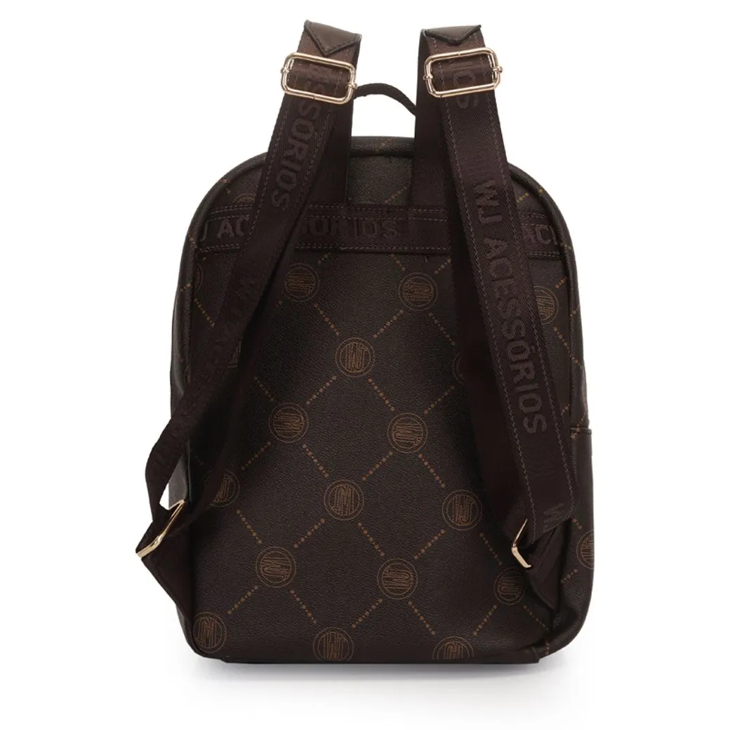 A mochila WJ Acessórios é feita com material PU de alta qualidade para durabilidade. Seu design une praticidade e elegância com detalhes metálicos dourados. Ideal para quem busca conforto e estilo no dia a dia.