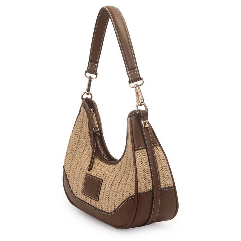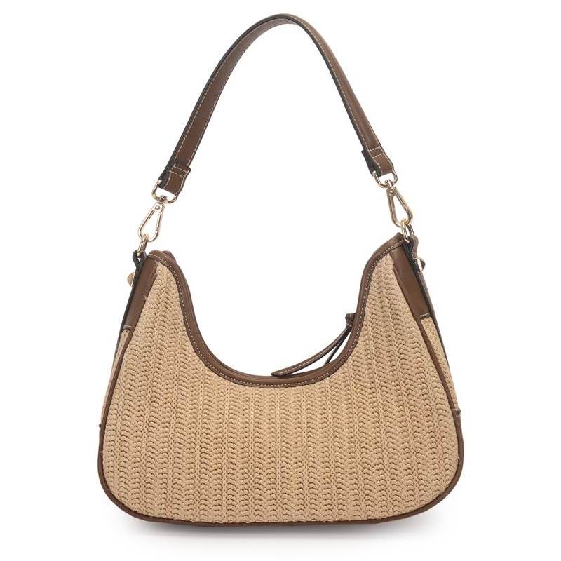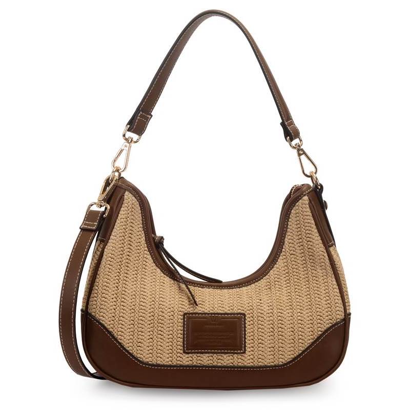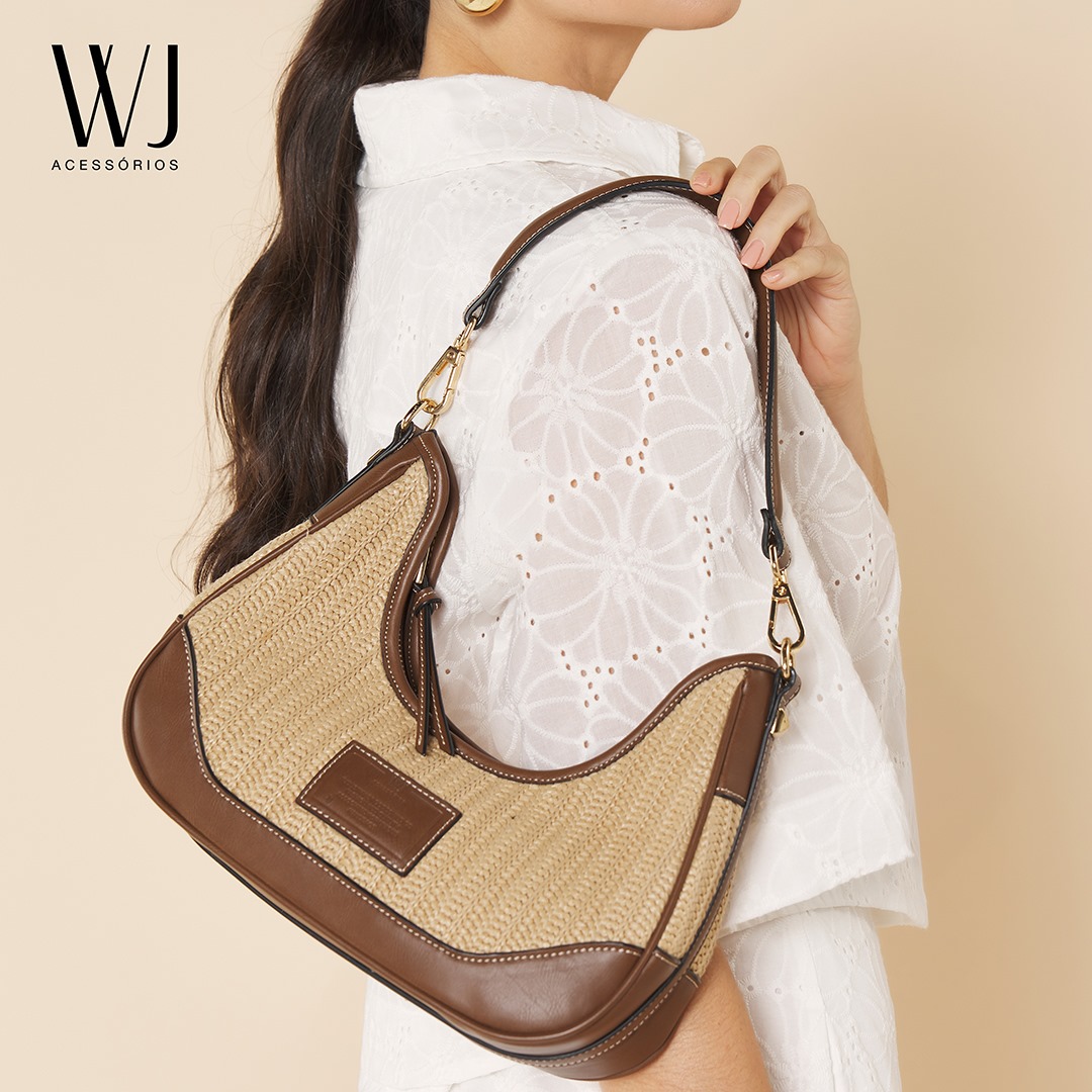 WJ Bolsa Tranversal Media Palha Etiqueta Personalizada Mocha