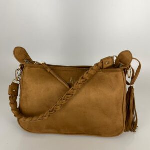 WJ Bolsa MĂ©dia Suede Com Alça De Trança – Caramelo