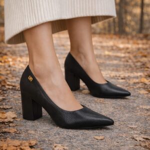 Solis Scarpin Salto Bloco Couro Preto